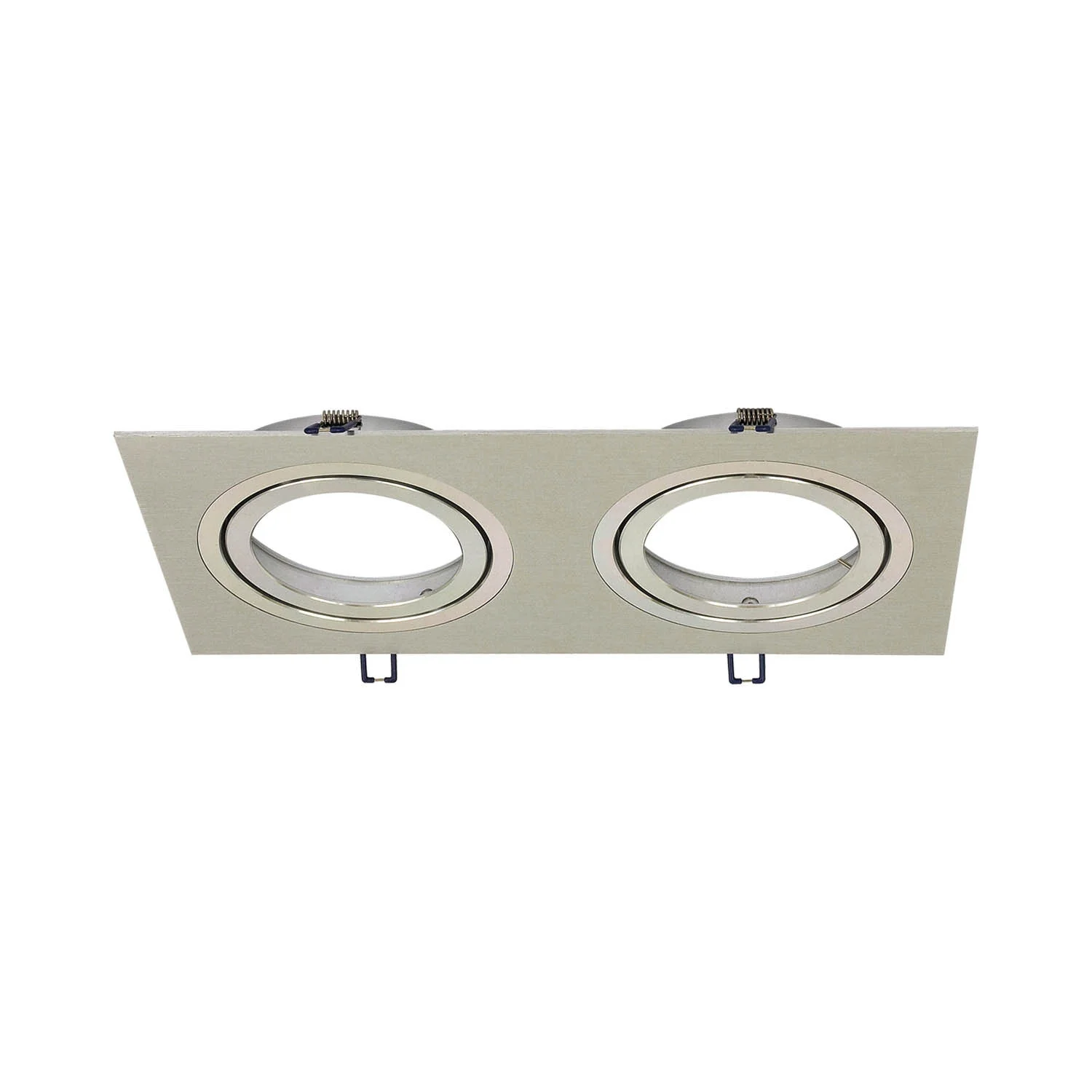 Apparecchio da incasso in alluminio spazzolato. Questo prodotto è rettangolare a 2 luci e richiede un foro di incasso di 2x15 cm di diametro. Questa lampada da incasso non include la lampadina. Ideale per la casa o l'azienda.