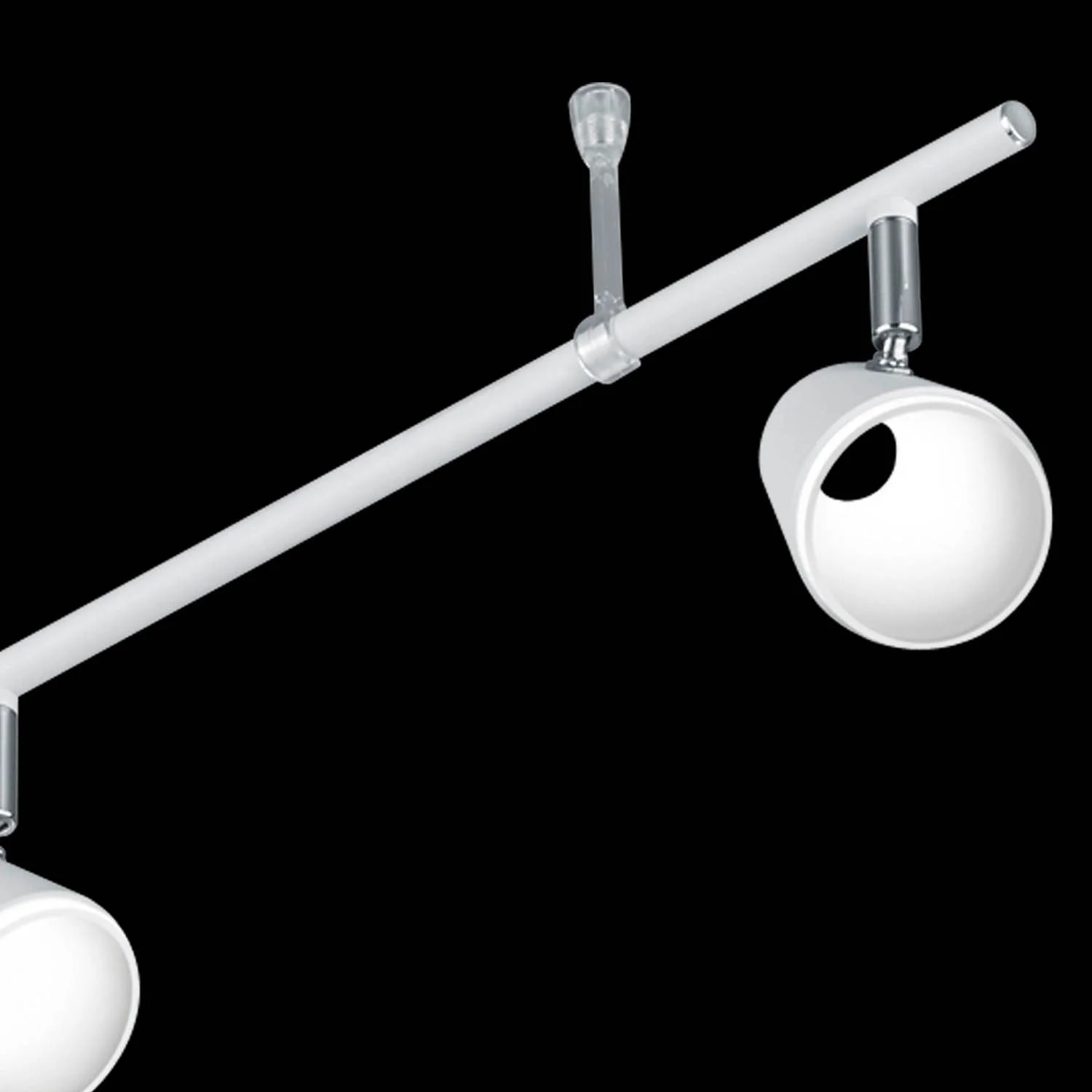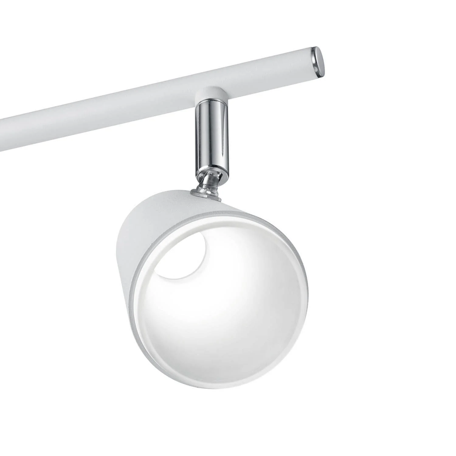Faretto a binario a 6 luci in stile moderno, realizzato in metallo con finitura bianca e cromata e diffusori in acrilico. Ideale per il soggiorno, la cucina, i corridoi o per la vostra attività commerciale, le gallerie d'arte, ecc.