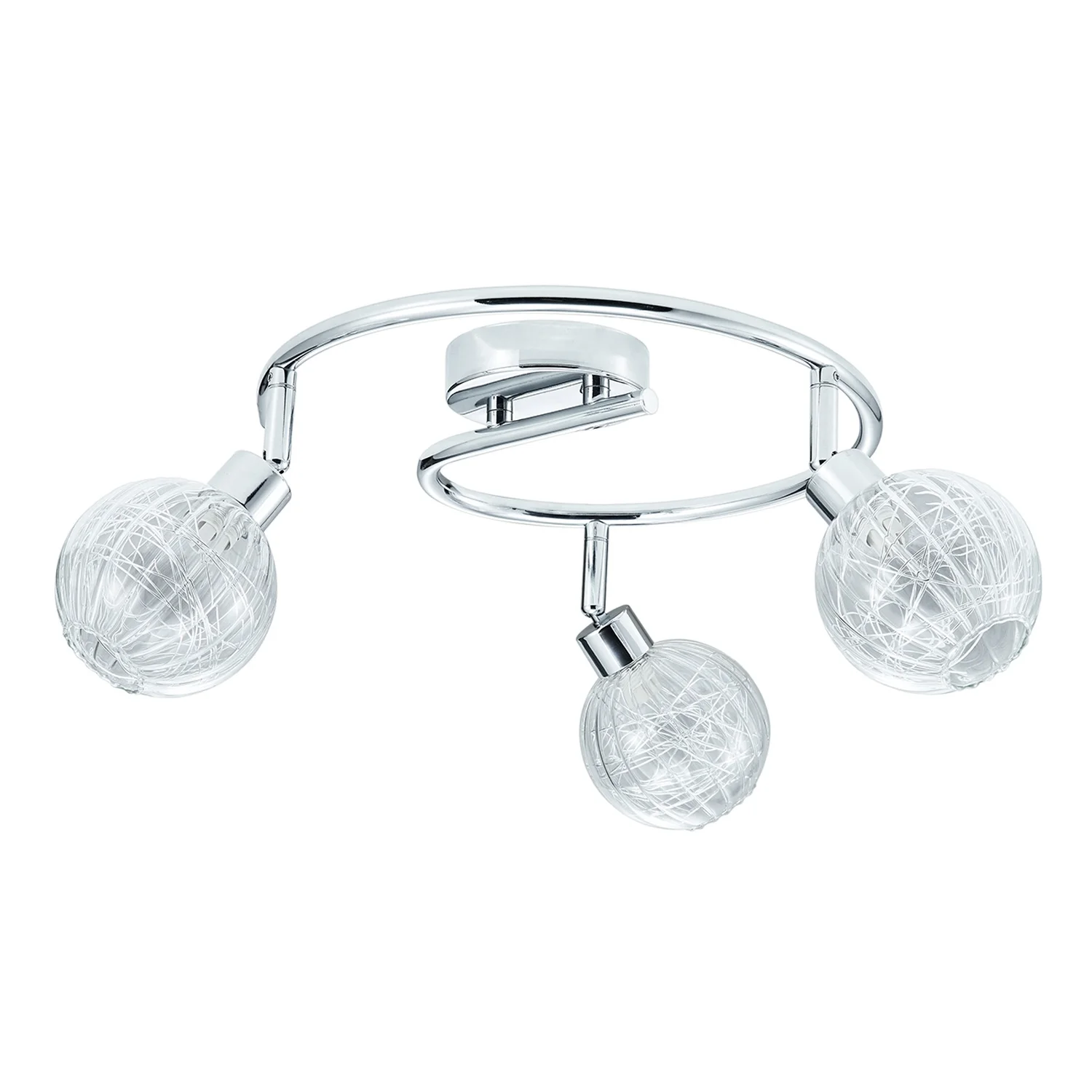 Questa lampada da soffitto a 3 luci è realizzata in metallo cromato e i suoi paralumi sono in vetro. Perfetta per illuminare soggiorno, sala da pranzo e camere da letto. Questa plafoniera è elegante e adatta agli interni moderni.