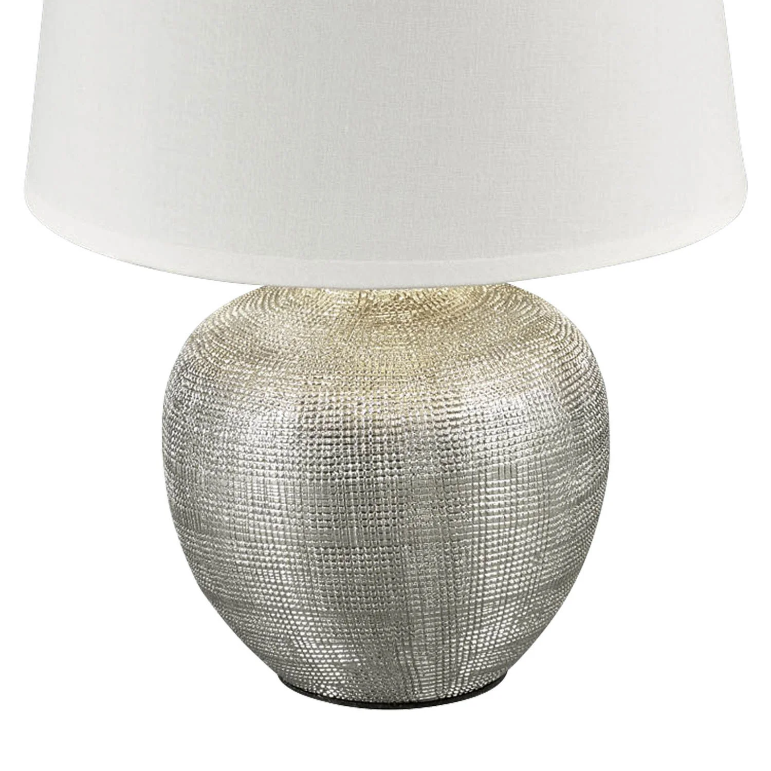 La lampada da tavolo Splendour è realizzata in ceramica. Il paralume è in tessuto bianco all'esterno e argento all'interno. Ideale per l'uso in soggiorno e in camera da letto. Funziona con una lampadina con attacco E14 fino a 40W. Si adatta perfettamente agli interni moderni.