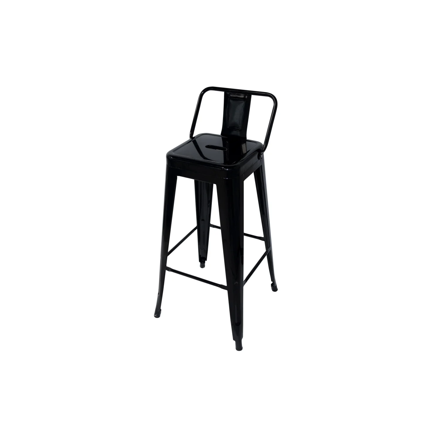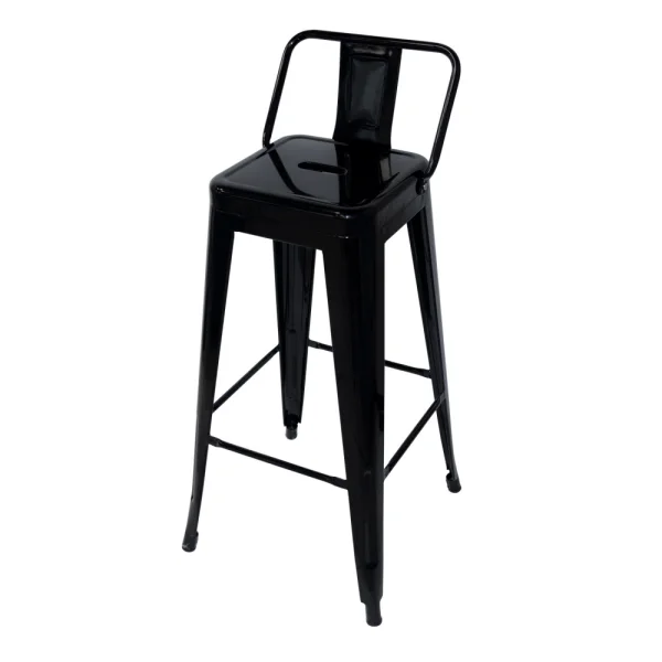 Il Black Josephine High Stool è realizzato in acciaio ed è dipinto con vernice epossiccia nera. Ha schienalo e due barre in basso che rendono la funzione footrest. Ideale per barrette alte sia dalla vostra cucina di casa o per la vostra attività.