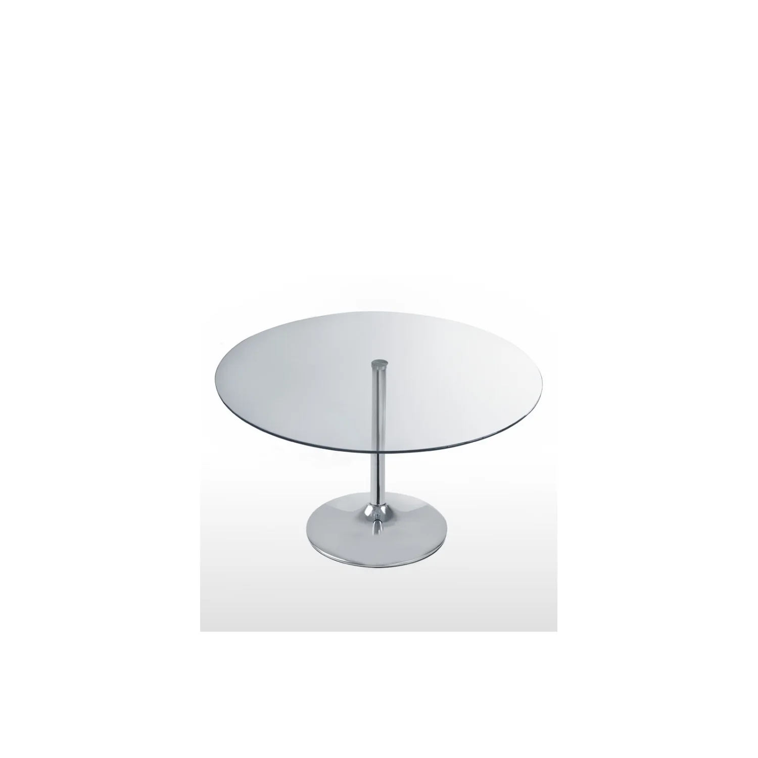 L'elegantetavolo da pranzo Gravity è realizzato in acciaio cromato con un piano in vetro temperato di 10 mm di spessore di forma circolare.
