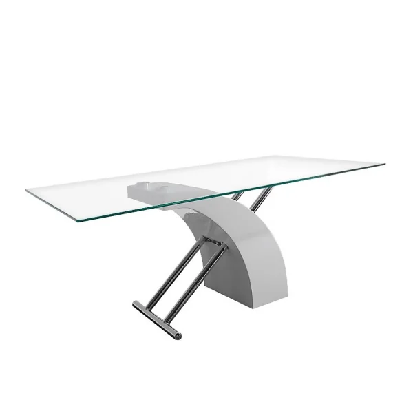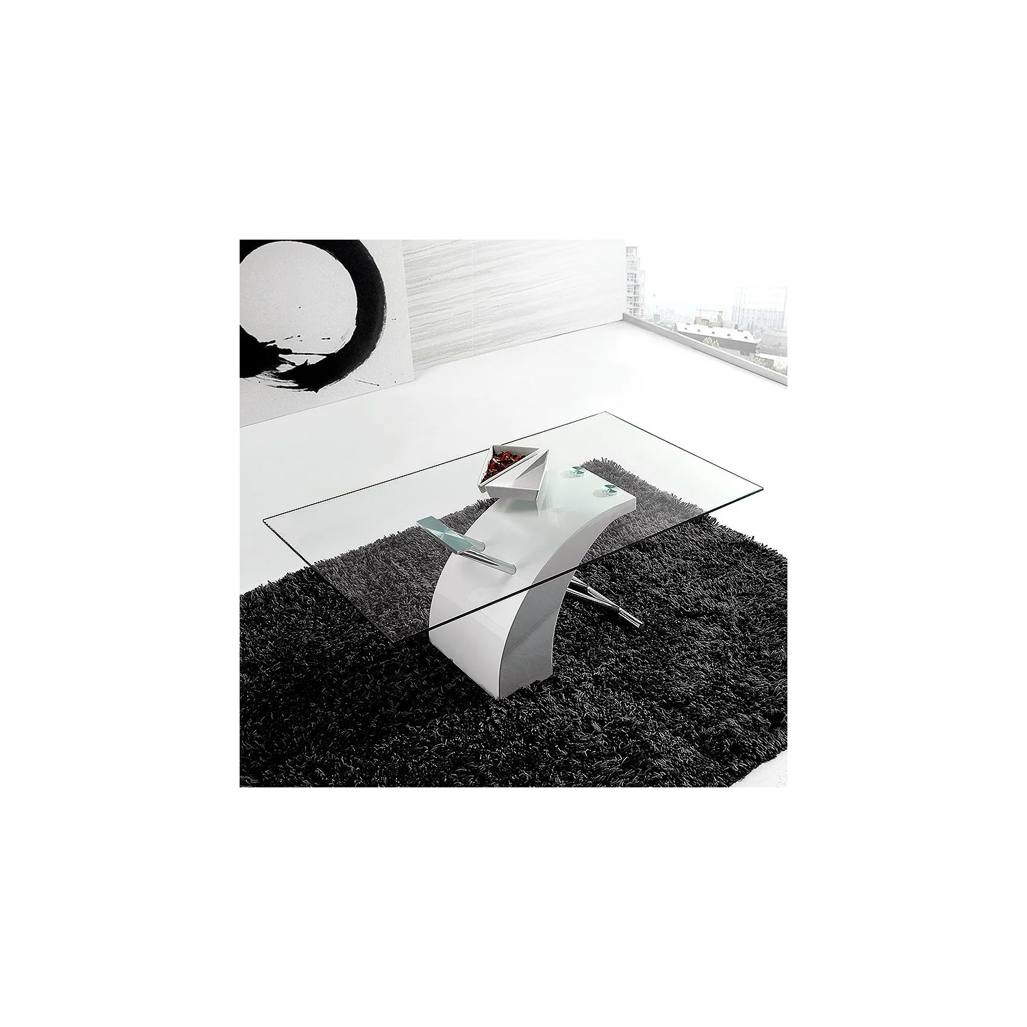 Il tavolino Clarity ha un design elegante, con una struttura in MDF laccato bianco e una barra d'acciaio che sostiene il piano in vetro trasparente di forma rettangolare. Perfetto per aggiungere un tocco sofisticato e moderno al vostro salotto, alla sala da pranzo e/o alla cucina. Un tavolo che sorprenderà chiunque visiti la vostra casa con il suo design originale!