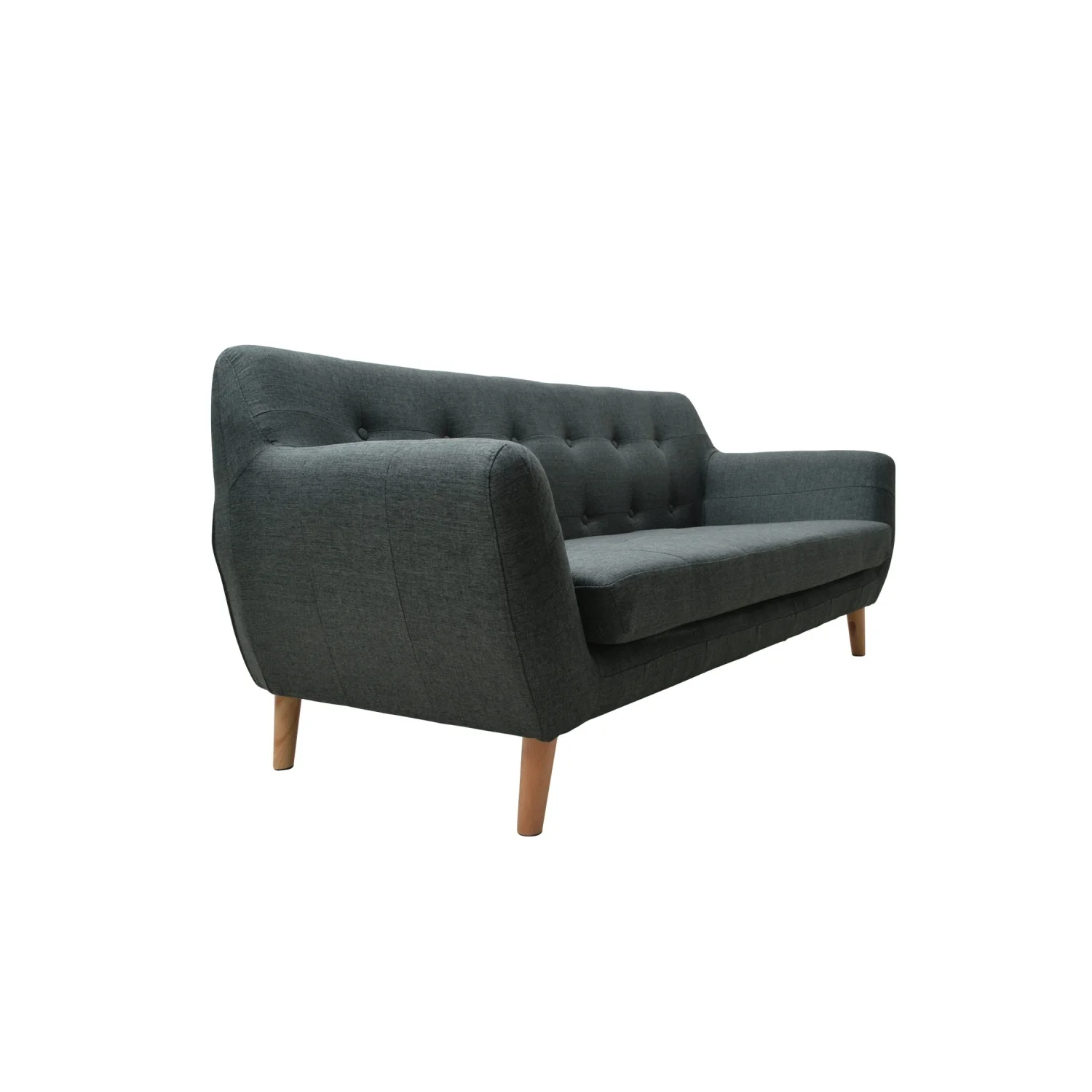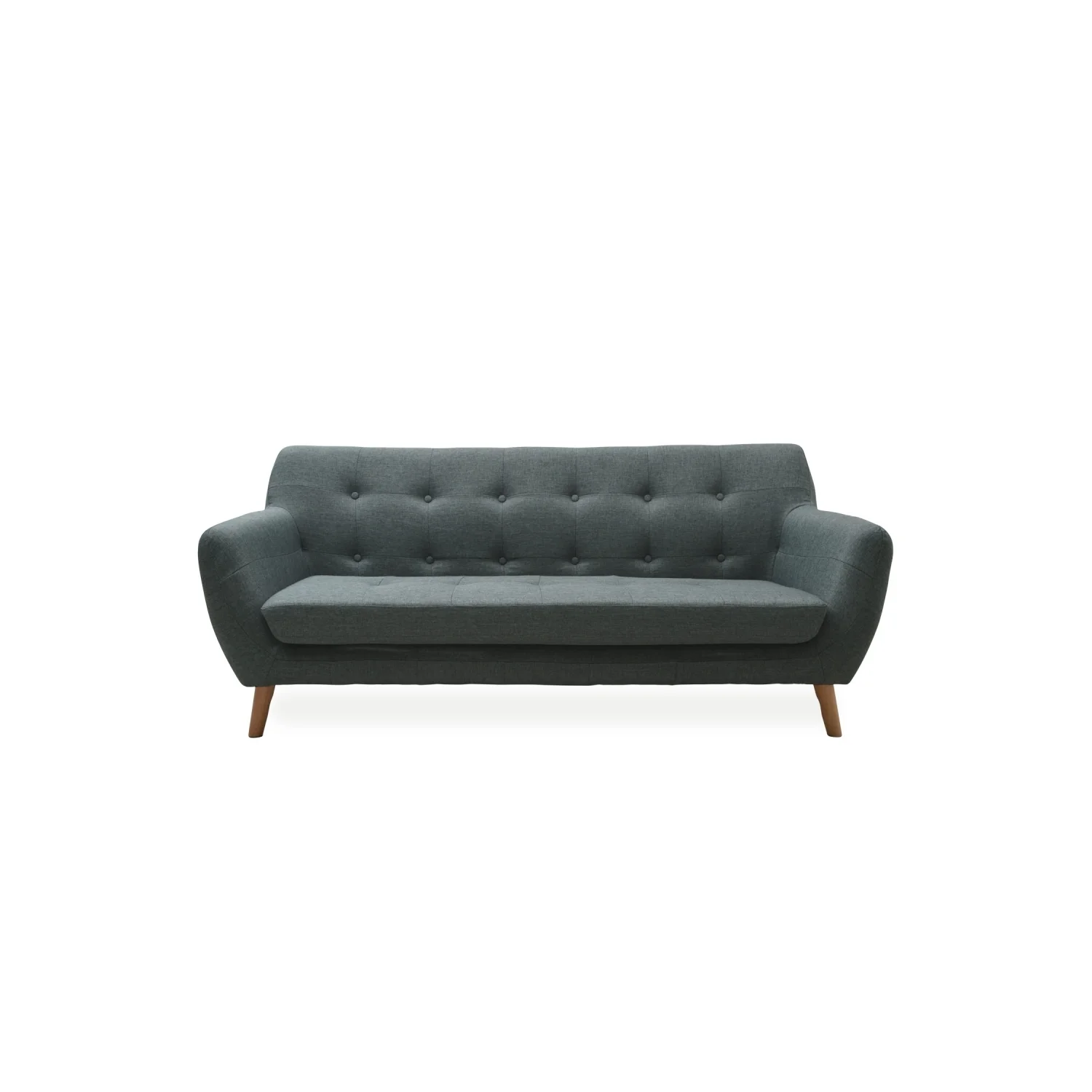Il divano Clementina Vintage Olive Grey ha una struttura arrotondata con un design sofisticato dello schienale e una seduta con un comodo cuscino. Le gambe affusolate sono in legno color rovere. È rivestito in tessuto di poliestere, con imbottitura in schiuma di densità 25-30Kg/metro cubo . Il divano Clementina Vintage è disponibile in 6 colori diversi.