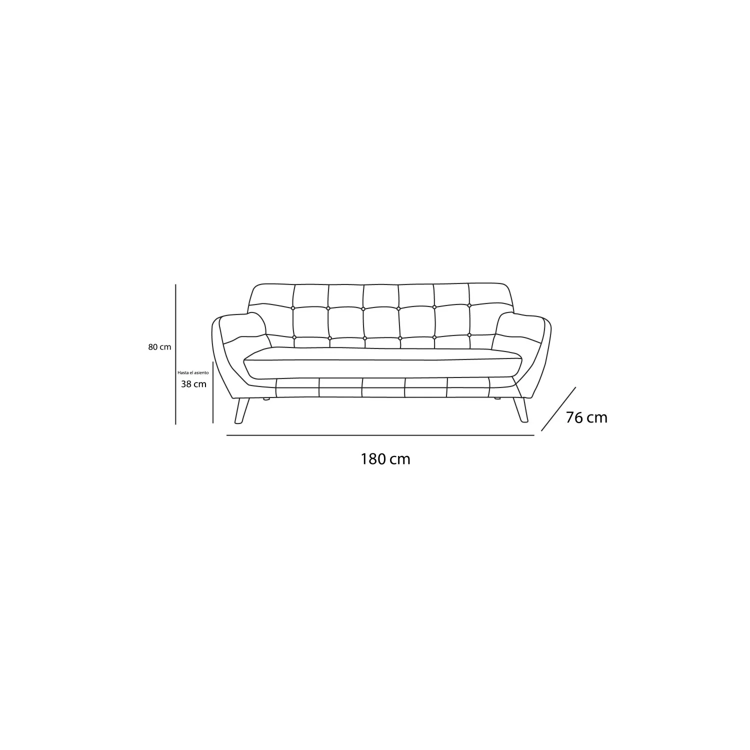 Misure: larghezza 180 cm, profondità 76 cm, altezza 85 cm (fino al cuscino alto 43 cm), larghezza del cuscino 147 cm, profondità del cuscino 58 cm.