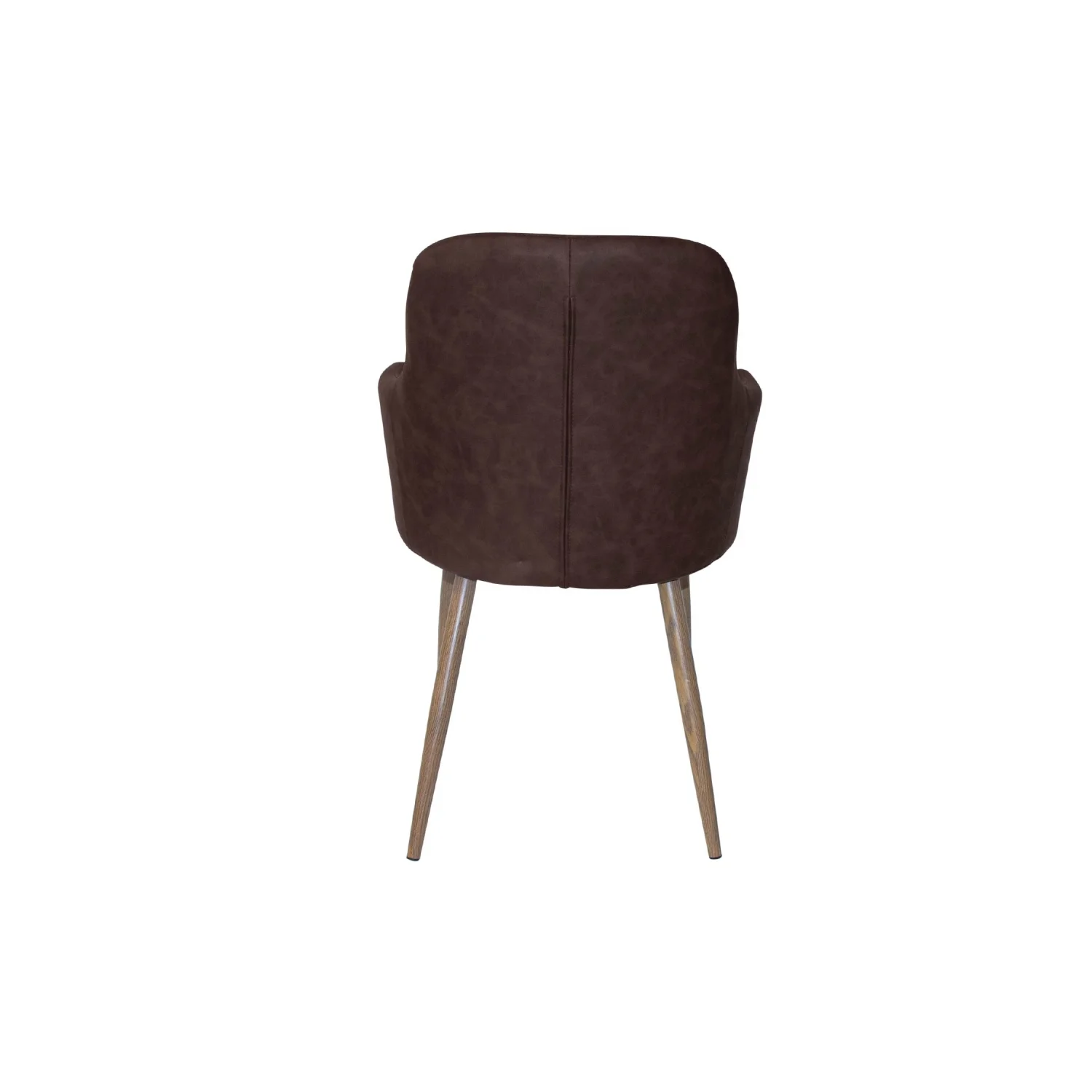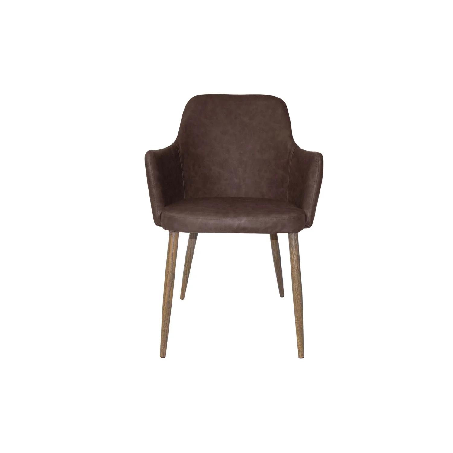 La poltrona Mandarina marrone ha una seduta rivestita in PU, un materiale che imita la pelle naturale, e le gambe sono metalliche e rivestite in legno di faggio. Questa poltrona darà un tocco caldo e accogliente al vostro spazio, adattandosi facilmente a diversi ambienti e stili.