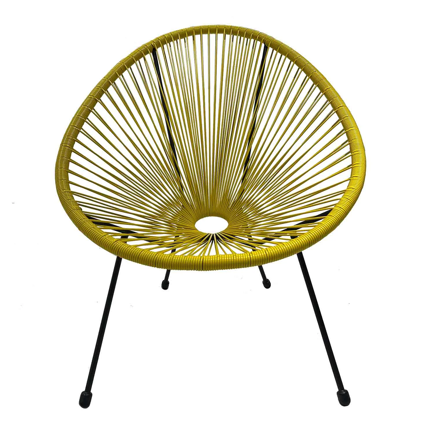 È una sedia ideale per il tuo giardino, ha una seduta a forma concava che le conferisce personalità, e la sua struttura è composta da una rete metallica in polietilene e da gambe metalliche in acciaio saldato laccato in nero.