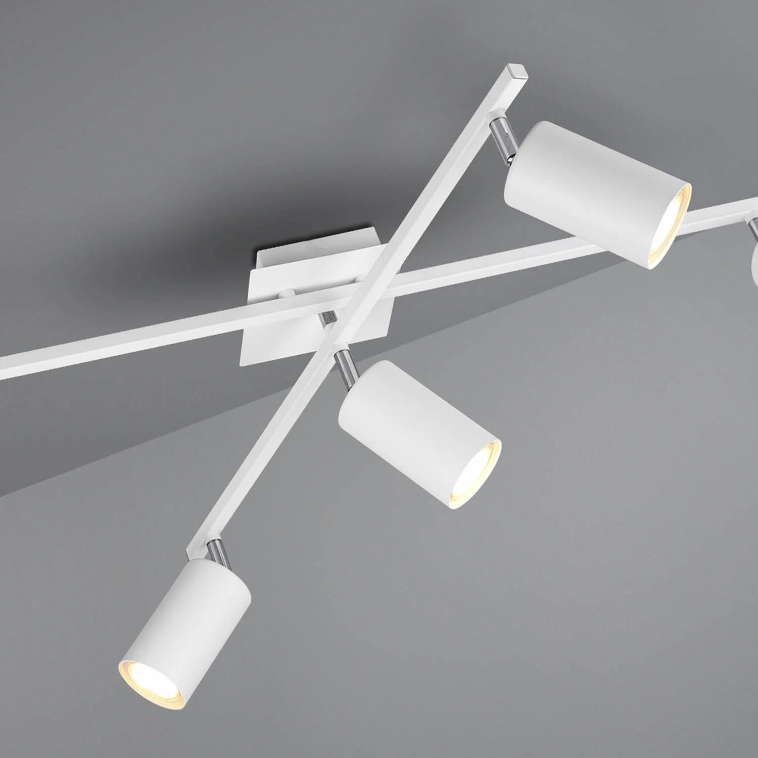 Il soffitto a soffitto Grafton è contemporaneo in stile e porterà stile nelle camere della vostra casa come soggiorno e camere da letto. Funziona con bulbi di bushing GU10 di massimo 35W (bulbi non inclusi) ed è consigliabile mettere lampadine a LED su di esso. Si tratta di un soffitto a soffitto che può essere regolato in modo variabile. Pivontante. È fatto di metallo con una finitura bianca. Adatto per la copertura e con IP20 solo per uso interno.