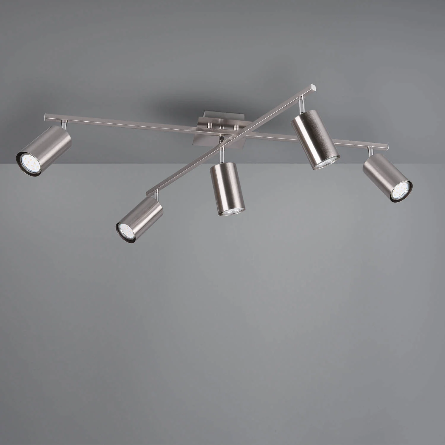 Il soffitto a soffitto Grafton è un prodotto altamente sofisticato che è fatto di metallo con finitura al nichel opaco. Funziona con cinque bulbi di bushing GU10 massimi da 35W (non inclusi) si consiglia di mettere lampadine a LED su di esso. Ha un IP20 che significa che è indicato solo per uso interno. Questo soffitto moderno può essere regolato in modo variabile e solo per il montaggio del soffitto.
