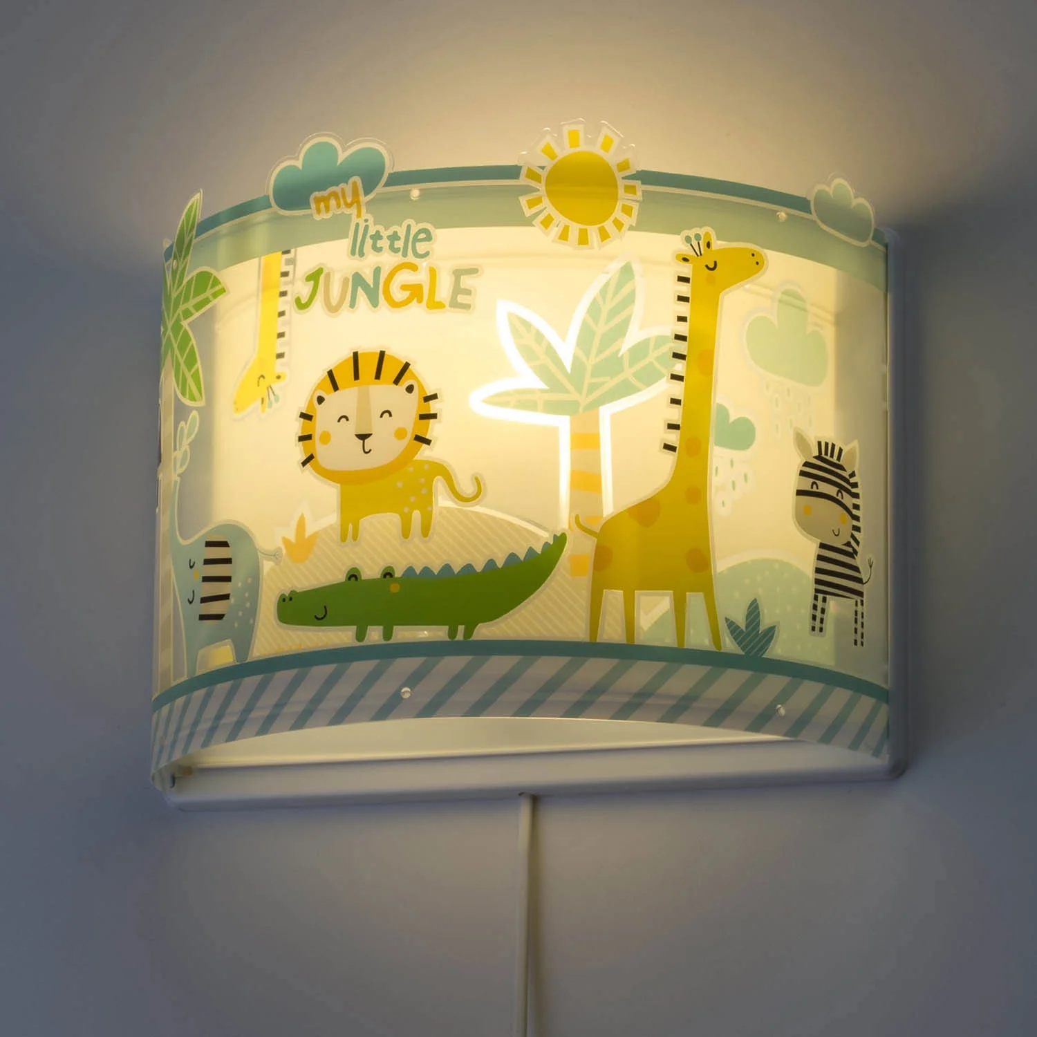 Questa lampada da parete per bambini della collezione My Little Jungle presenta divertenti motivi animali della giungla che i nostri peke amano così tanto. Ideale per darvi una luce accogliente con un tocco decorativo e meglio di tutti, i disegni dei piccoli animali brillano al buio. Si tratta di una lampada da parete per bambini che offre due possibilità di installazione: con e senza cavo con interruttore. Il suo schermo è realizzato in polipropilene trasparente e presenta un diffusore di luce inferiore. Funziona con una lampadina di bushing E27 massima 60W (bulbo non incluso).