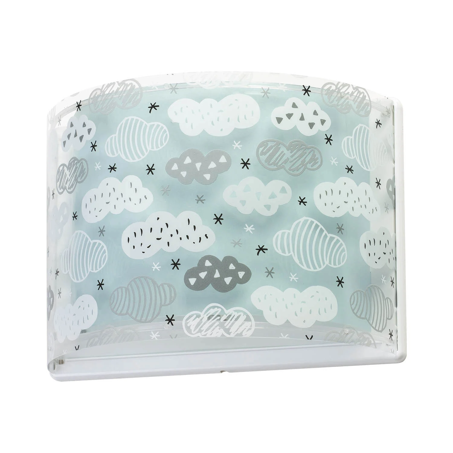 Questa lampada da parete della collezione Clouds è perfetta per completare l'illuminazione della tua camera. Scopri l'intera collezione nel nostro negozio online! Il suo doppio schermo è realizzato in polipropilene trasparente con diffusore di luce inferiore. L'unicità di questa lampada da parete è che può essere installato con e senza cavo con interruttore in modo da poterlo mettere come ti piace. Funziona con una lampadina di bushing E27 massima 60W (bulbo non incluso). Si consiglia di mettere una lampadina a LED su di esso.