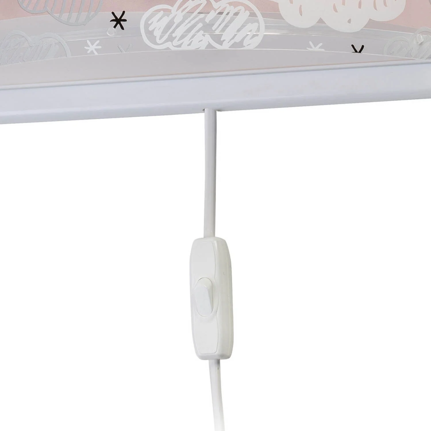 Si tratta di una lampada a parete per bambini a doppio schermo che è fatta di polipropilene trasparente con diffusore di luce inferiore. L'unicità di questa bella lampada da parete è che può essere installato con e senza cavo con interruttore in modo da poterlo mettere come ti piace. Funziona con una lampadina di bushing E27 massima 60W (bulbo non incluso). Si consiglia di mettere una lampadina a LED su di esso. Completa l'illuminazione della stanza della tua bambina che gli darà una bella decorazione.
