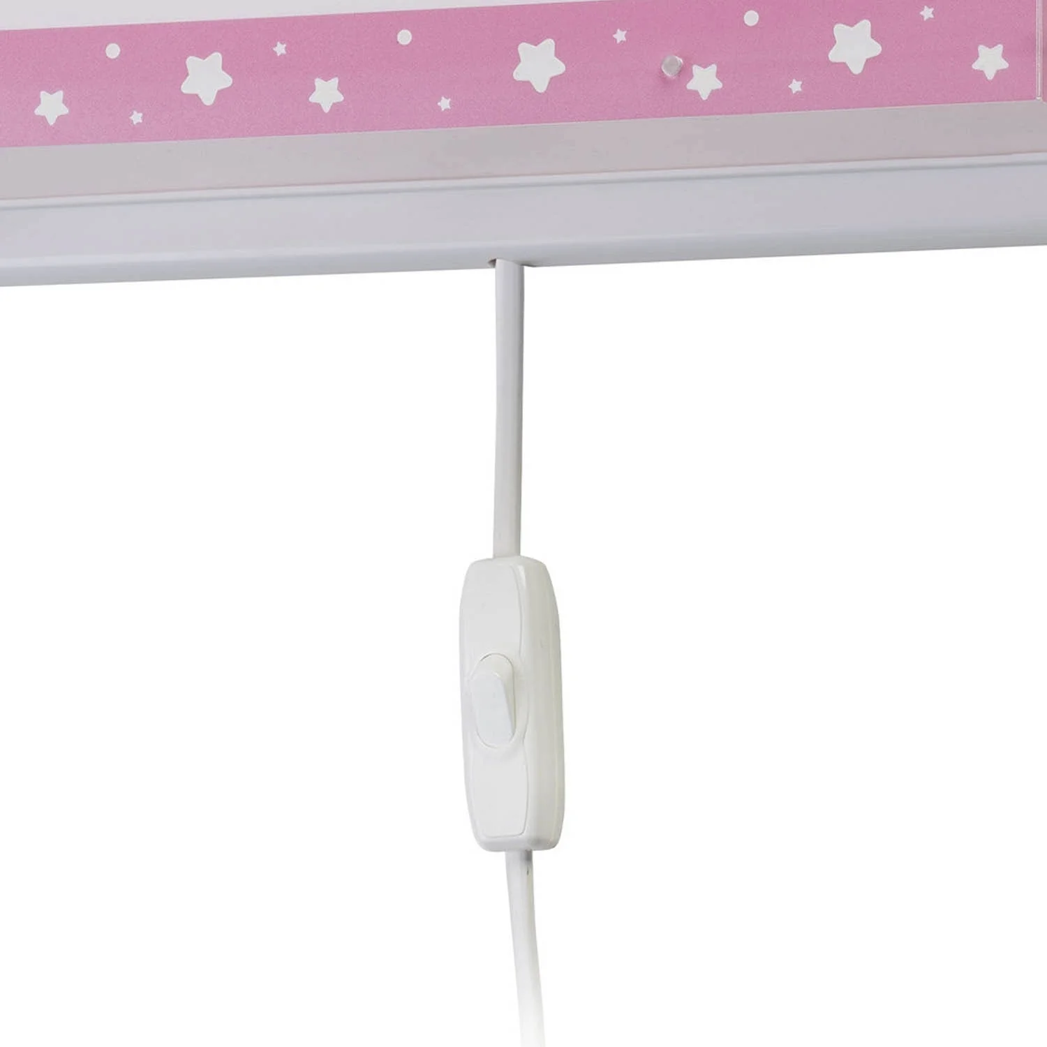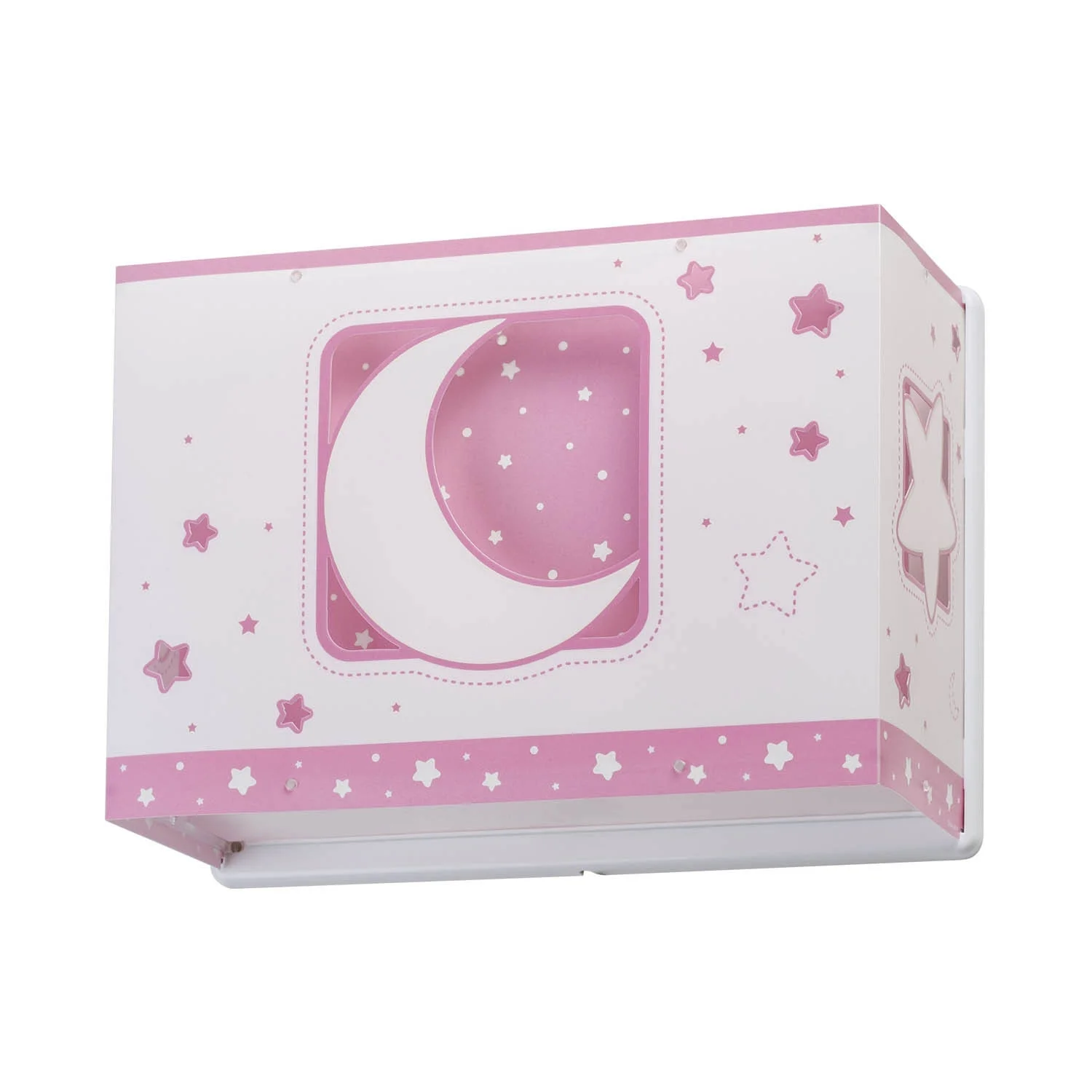 Si tratta di una lampada da parete della collezione Moonlight che amerete illuminare e decorare la stanza del vostro bambino. Questa applicazione per bambini presenta un doppio schermo che è fatto di polipropilene con diffusore di luce inferiore ed è rosa. La cosa unica di questa applicazione è che grazie alla fluorescenza del suo schermo brilla al buio e che può essere installato con e senza cavo interruttore. Funziona con una lampadina di bushing E27 massima 60W (bulbo non incluso). Si consiglia di utilizzare la lampadina a LED.