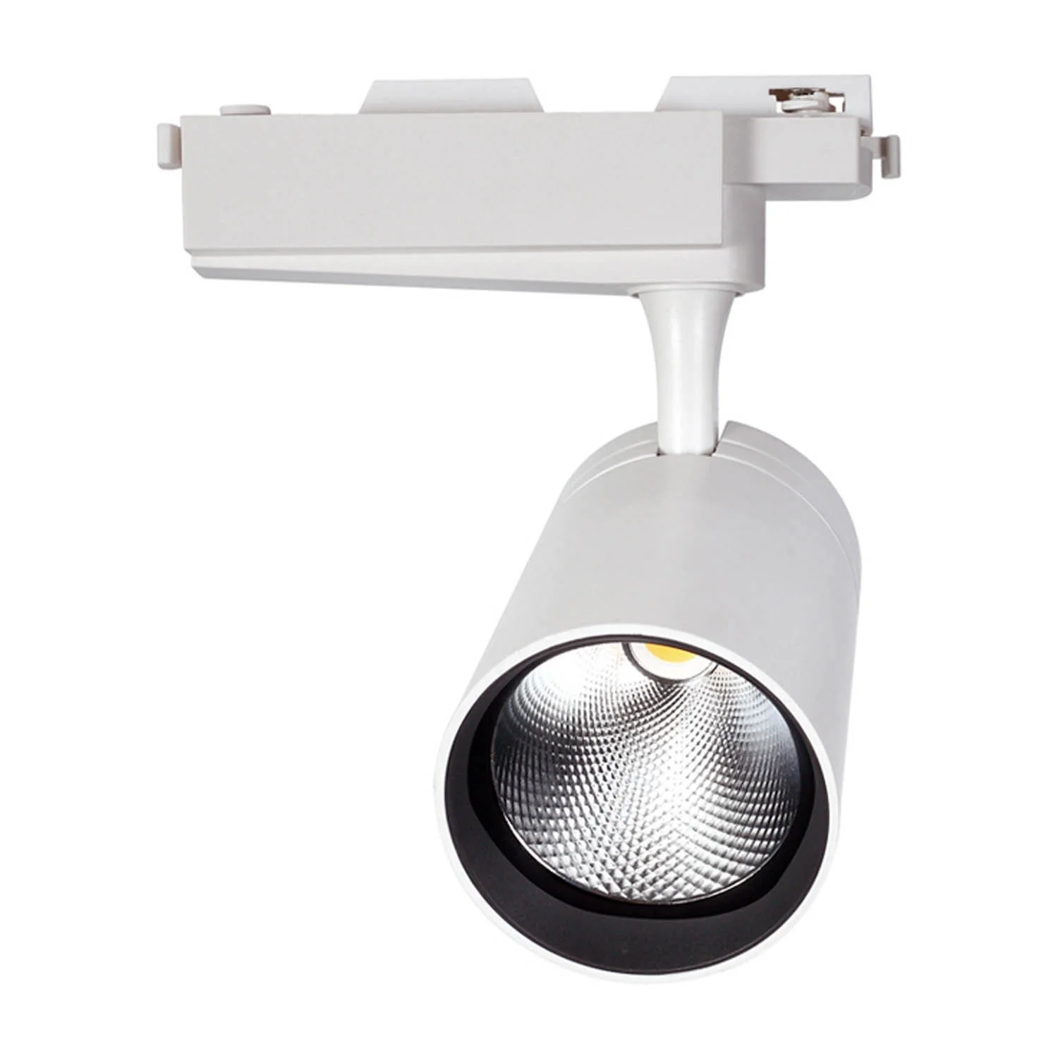 Faretto a binario LED per uso professionale, commerciale, uffici, showroom, il perfetto faretto a binario adatto a tutti i tipi di illuminazione tecnica. Il corpo di questo faretto è realizzato in alluminio con finitura bianca ed è dotato di un diffusore in vetro. Dotato di un LED COB (chip LED) integrato da 15W, fornisce una luce naturale di 4000K e 1300 Lumen (inclusi). Ha un' apertura luminosa di 24° ed è quindi certificato IP20 solo per uso interno. Questo faretto a binario ha un'elevata capacità di proiezione luminosa, perfetta per decorazioni, vetrine, centri commerciali, negozi, ecc. È un prodotto ad alta efficienza energetica che può essere orientato in qualsiasi direzione.
