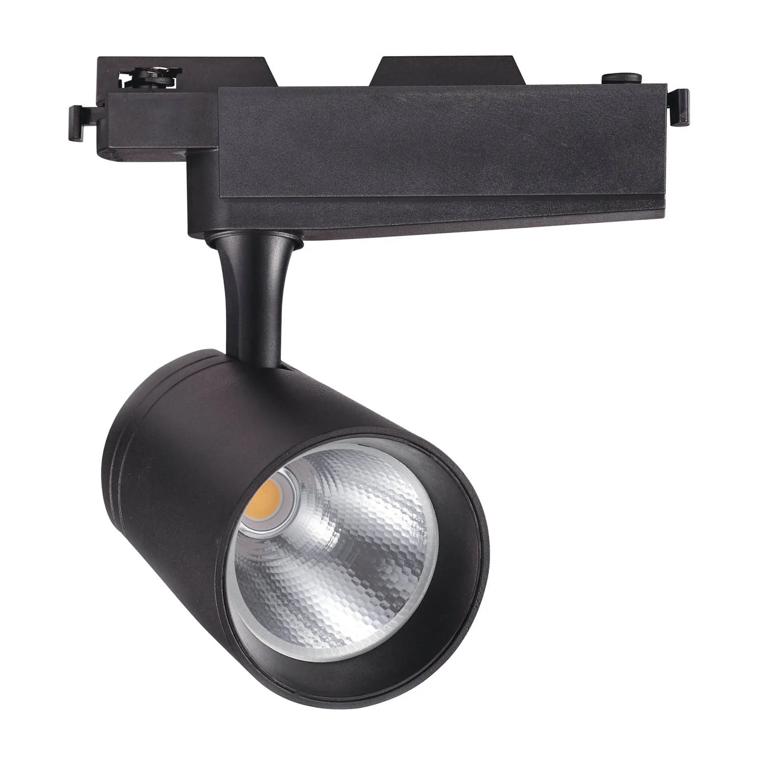 Si tratta di un faretto da corsia con molte possibilità di proiezione della luce, particolarmente adatto per negozi, vetrine, centri commerciali ecc. Questo faretto è dotato di tecnologia COB-LED integrata con una potenza di 35W, 3100 Lumen e fornisce una luce naturale di 4000K (inclusa). Questo faretto è realizzato in alluminio con finitura nera e diffusore in vetro. Il suo fascio di luce è di 24º e il certificato di protezione IP20 (solo per uso interno). Alta qualità ed efficienza energetica a un prezzo molto conveniente.