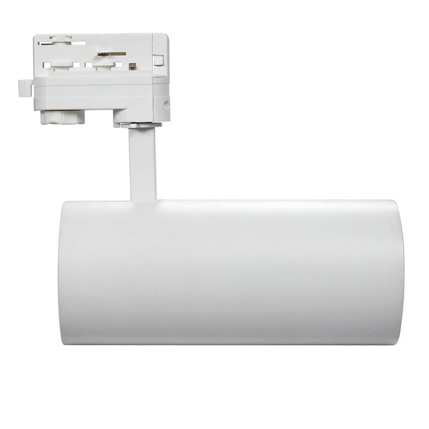 È un faretto a binario trifase con tecnologia LED-COB integrata , con una potenza di 30W e una luce naturale di 4000K (inclusa). È un faretto orientabile ad alta capacità con un'apertura luminosa di 45º. Particolarmente adatto per la proiezione di luce nelle vetrine dei negozi, nei centri commerciali , nei locali o negli stabilimenti. È un faretto a binario di alta qualità e ad alta efficienza energetica. È dotato di certificato di protezione IP20. Questo faretto ha un'elevata capacità di proiezione della luce, grazie alla quale è possibile direzionare la luce nella direzione desiderata. Il corpo del faretto è in alluminio con finitura bianca e il diffusore è in PC.
