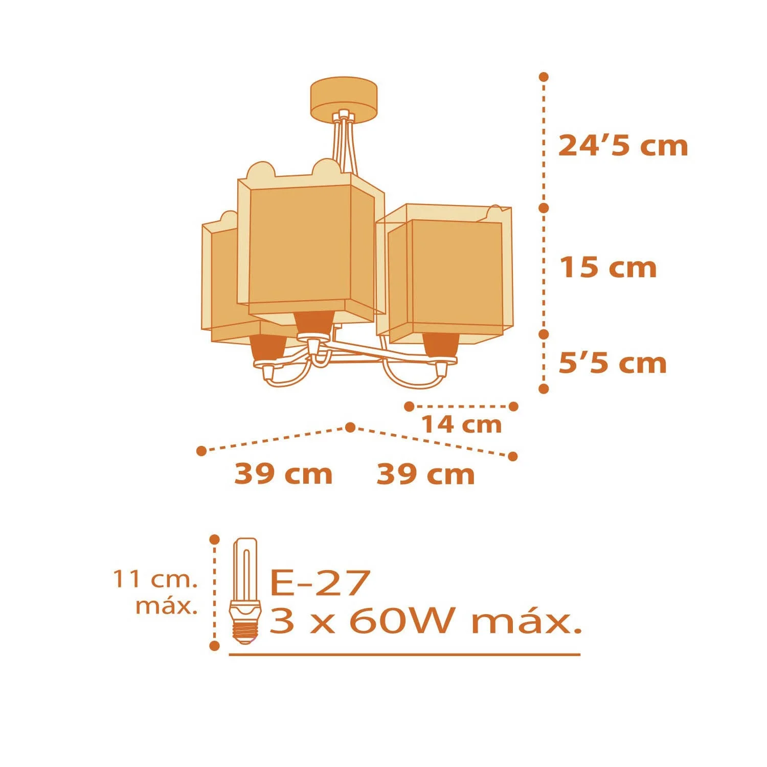 Funziona con 3 lampadine con attacco E27 da massimo 60W (lampadine non incluse).