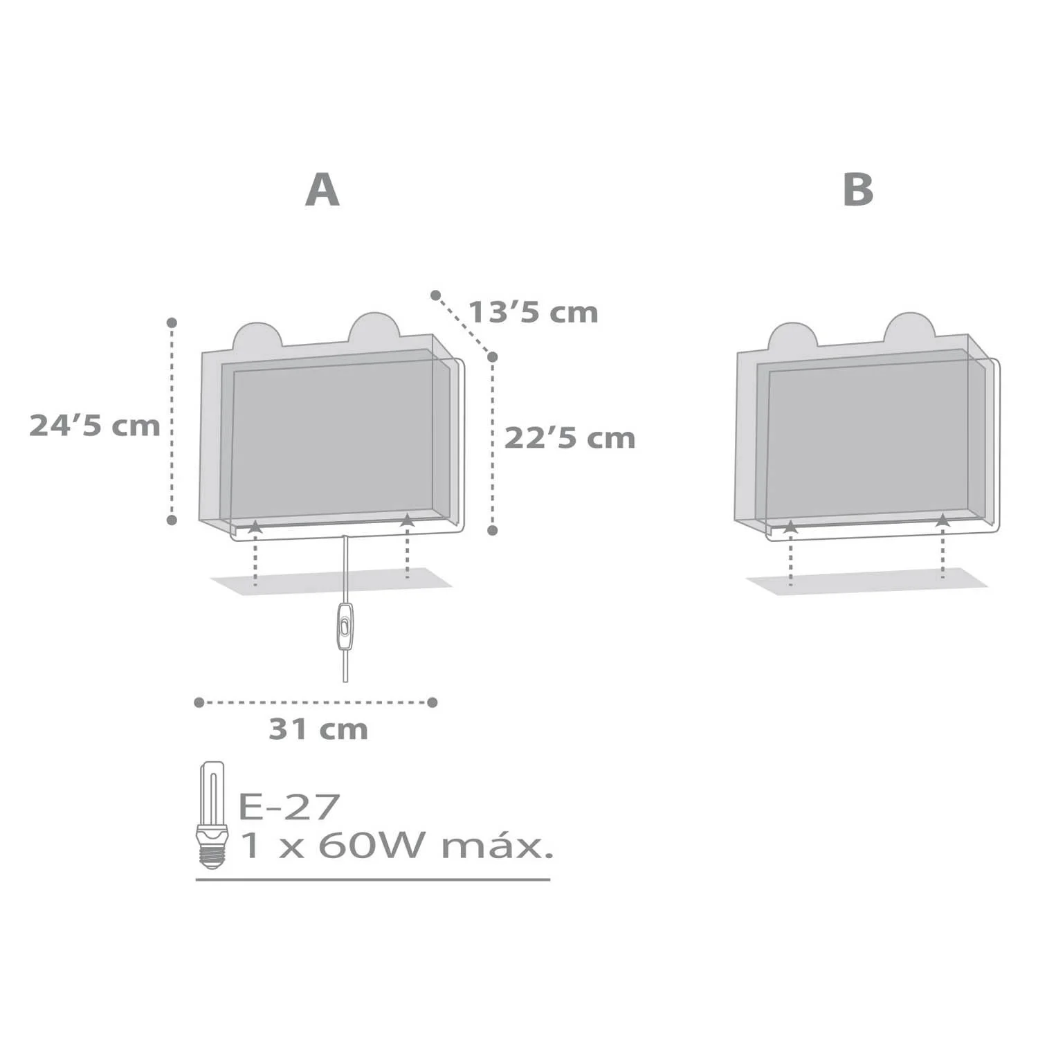 Funziona con una lampadina di bushing E27 massima 60W (bulbo non incluso).
