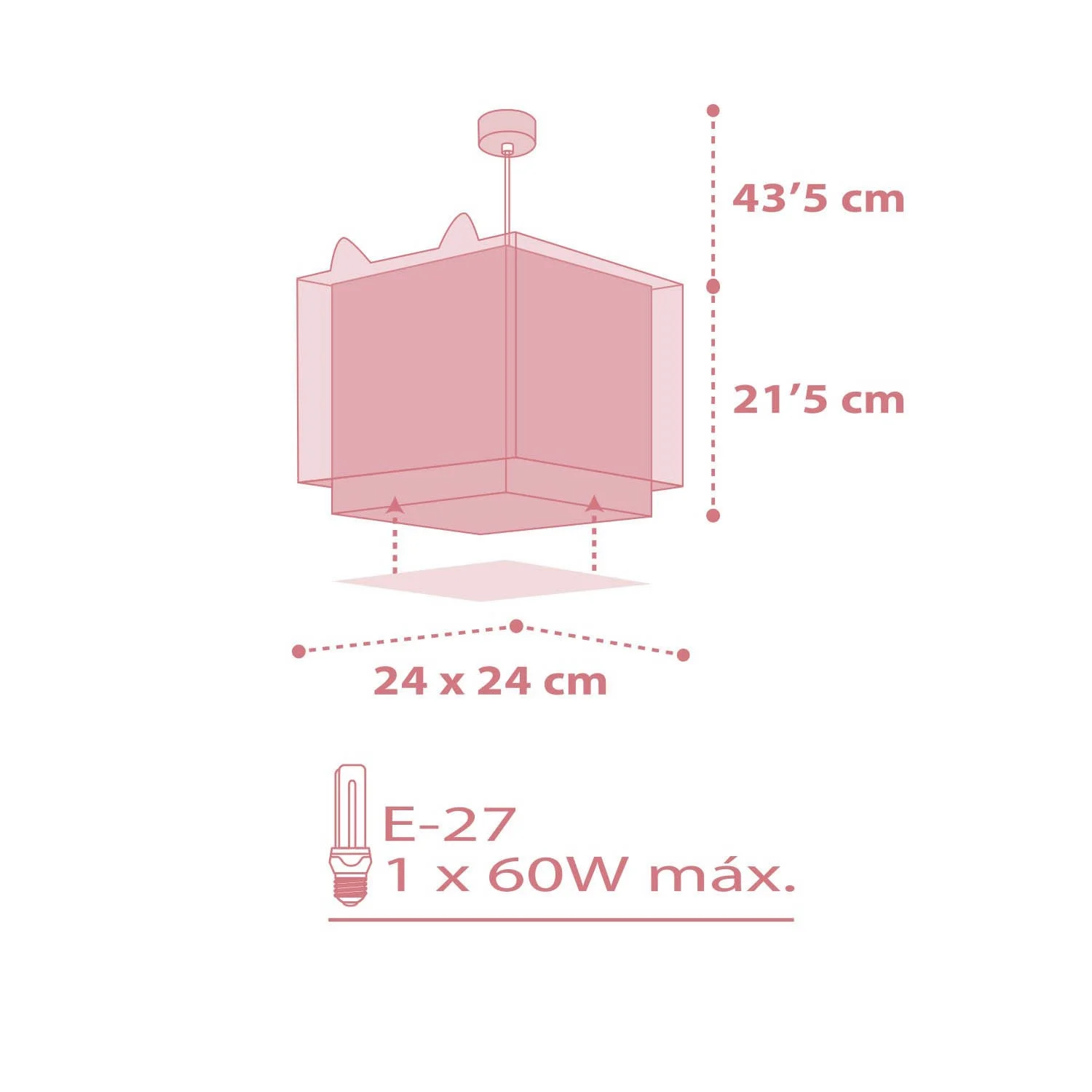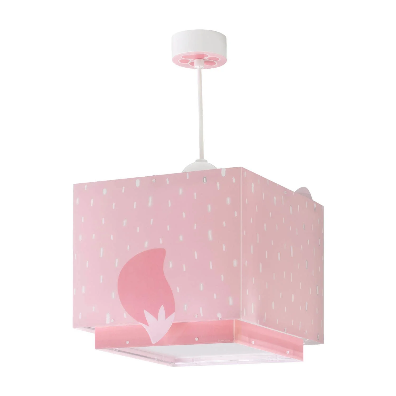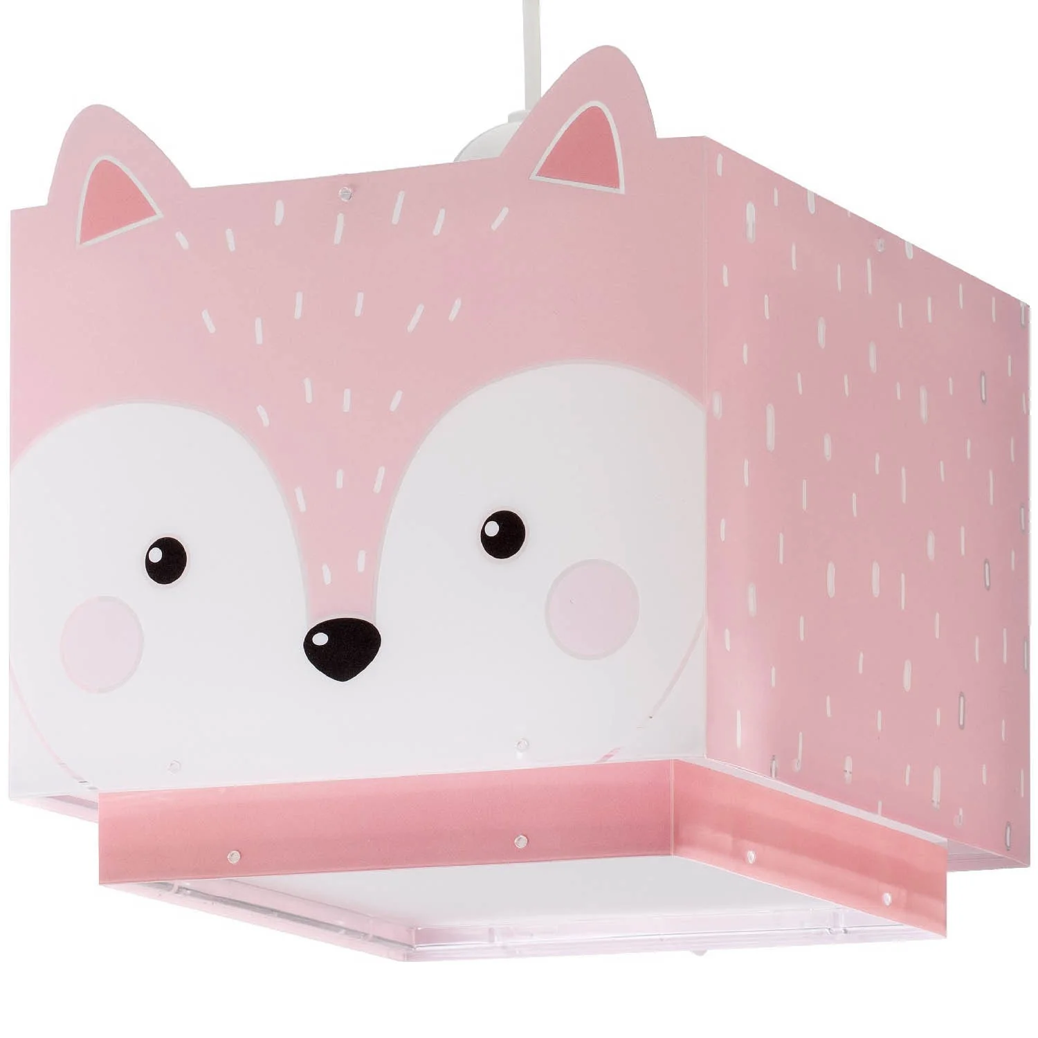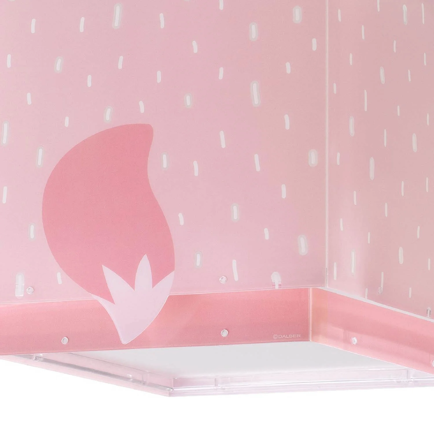 Il paralume è rosa, ha una forma quadrata con il motivo del muso e delle orecchie di una simpatica volpe sulla parte superiore.