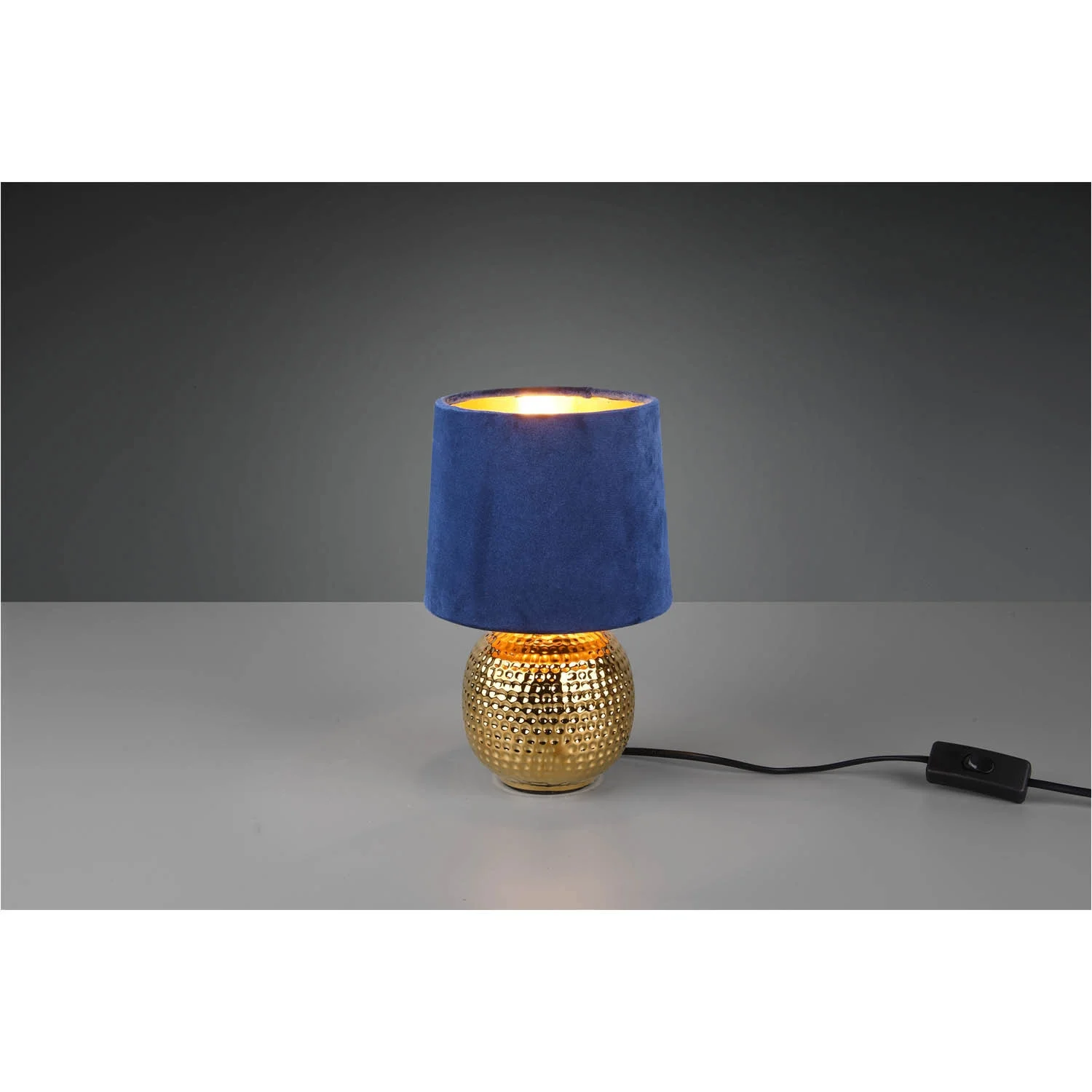 La base è in ceramica con finitura in oro e la tonalità è realizzata in samt blu, una sorta di velluto.