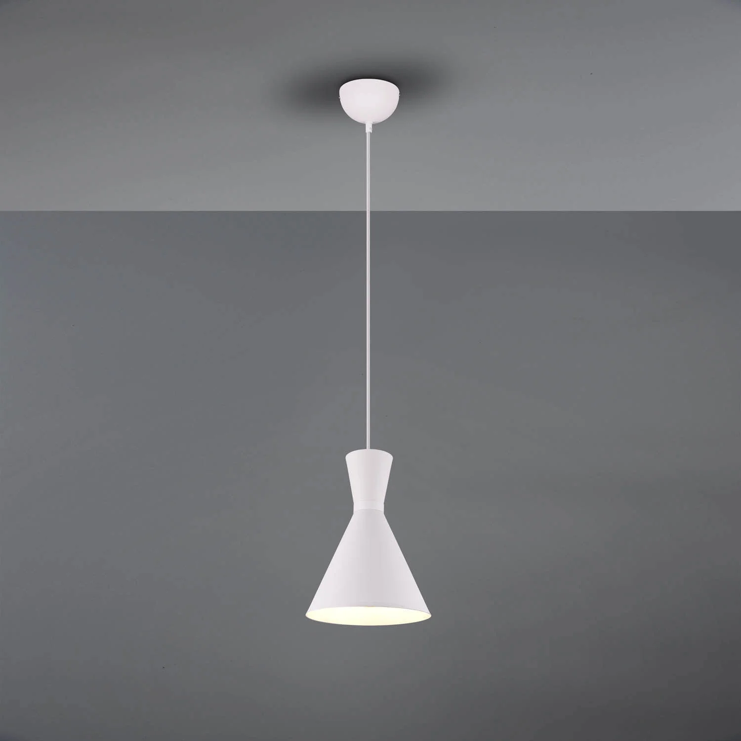 È una lampada in stile moderno, realizzata in metallo con finitura bianca opaca.