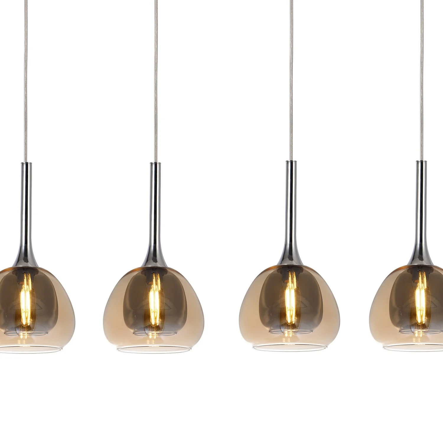 SOSPENSIONE 4 LUCI CRISTALLO ESTERNO AMBRA INTERNO FUMÉ NOLINA
