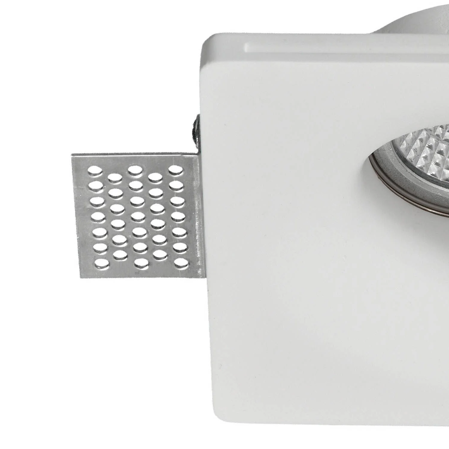 Questo faretto da incasso di forma quadrata è realizzato in gesso e funziona con una lampadina con attacco GU10 di max. 50W (lampadina non inclusa).Questa luce da incasso in gesso con forma quadrata che funziona con una lampadina con attacco GU10 di massimo 50W (lampadina non inclusa).