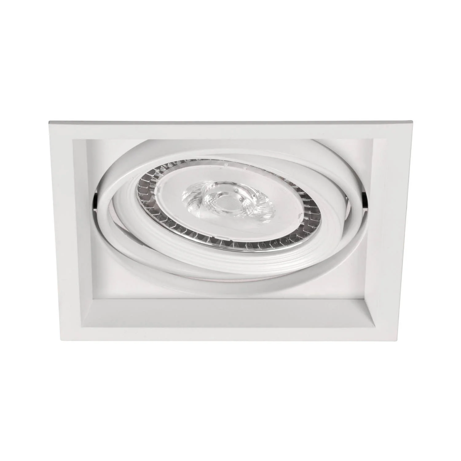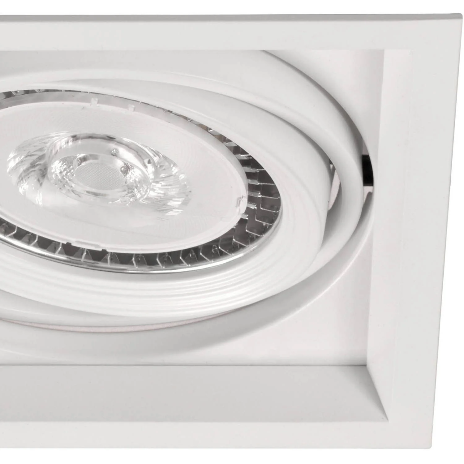 Si tratta di un anello quadrato incassato a doppia inclinazione, realizzato in alluminio con finitura bianca opaca.Si tratta di un anello quadrato incassato a doppia inclinazione in alluminio con una finitura bianca opaca.