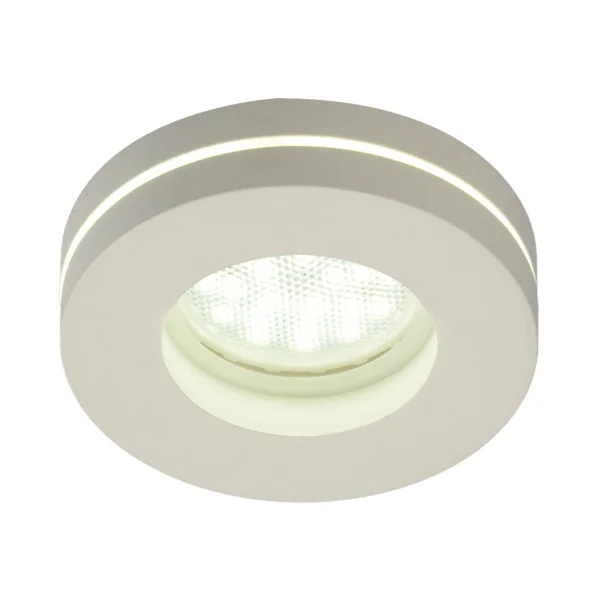 È un apparecchio rotondo da incasso meccanizzato con luce laterale, realizzato in alluminio con finitura bianca.