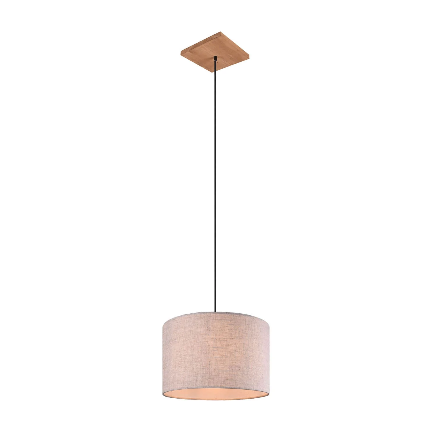 Si tratta di una lampada a sospensione in metallo con una finitura in nichel antico e il suo paralume è in tessuto bianco.