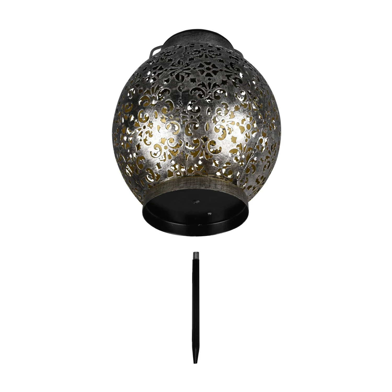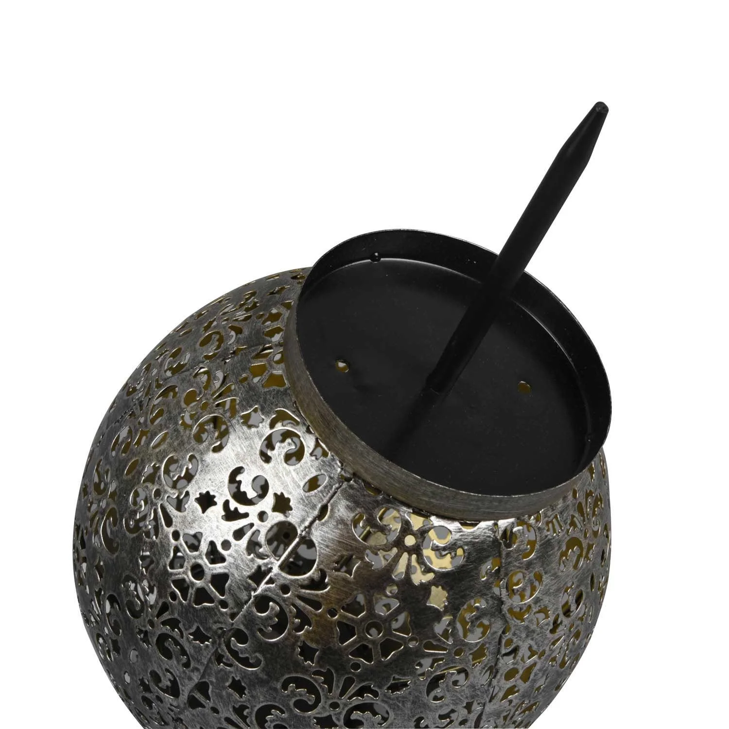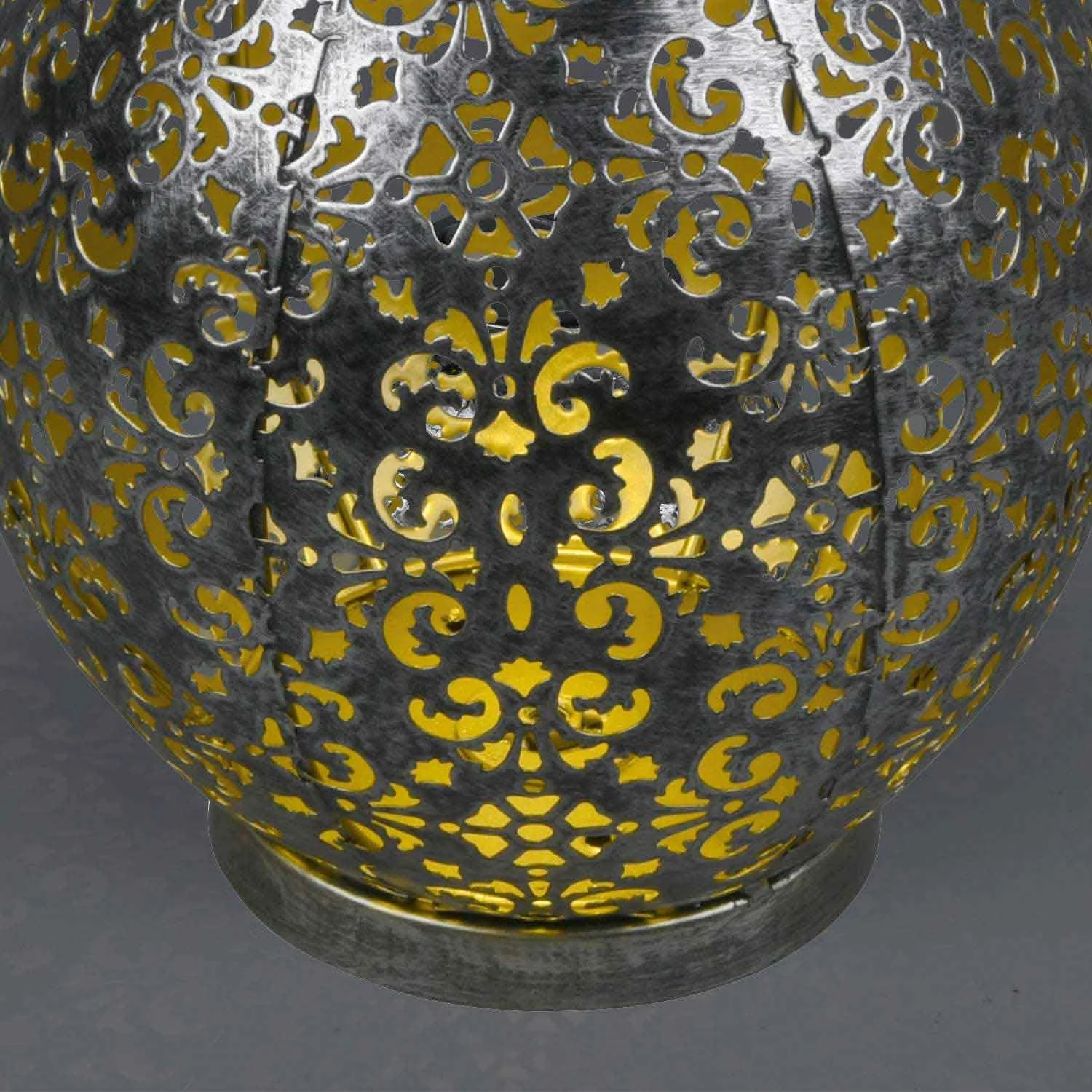 La struttura di questa lanterna è fatta di metallo con finitura argento antico.