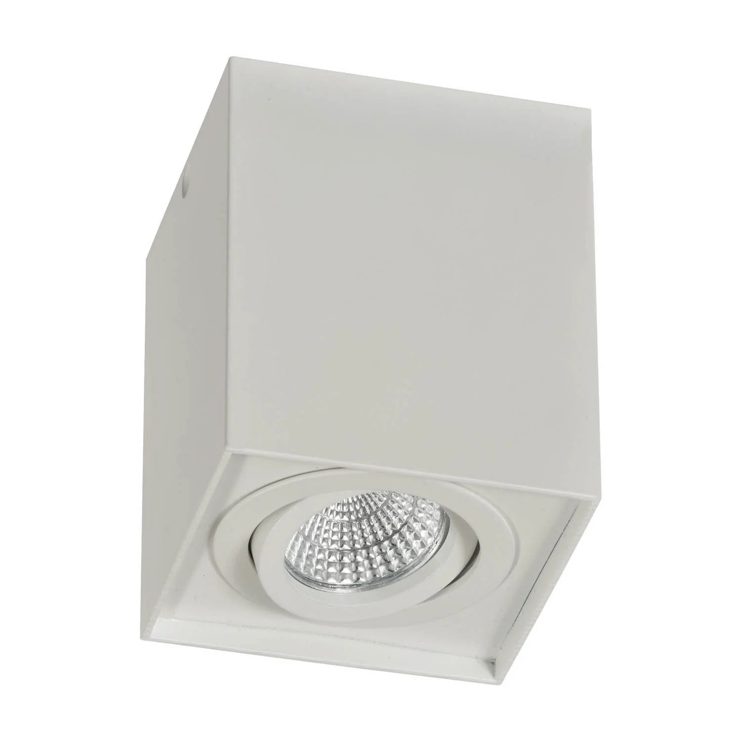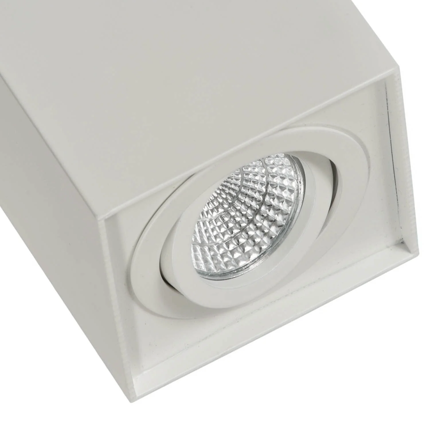 Questo faretto da superficie di forma quadrata è realizzato in alluminio con una finitura bianca.