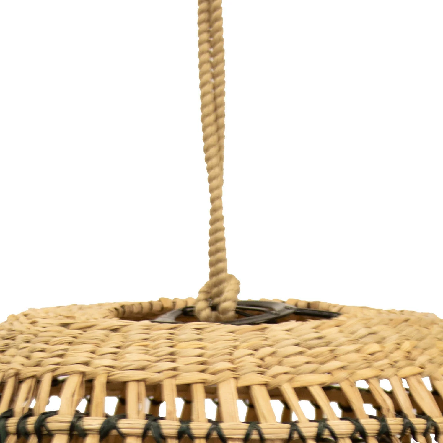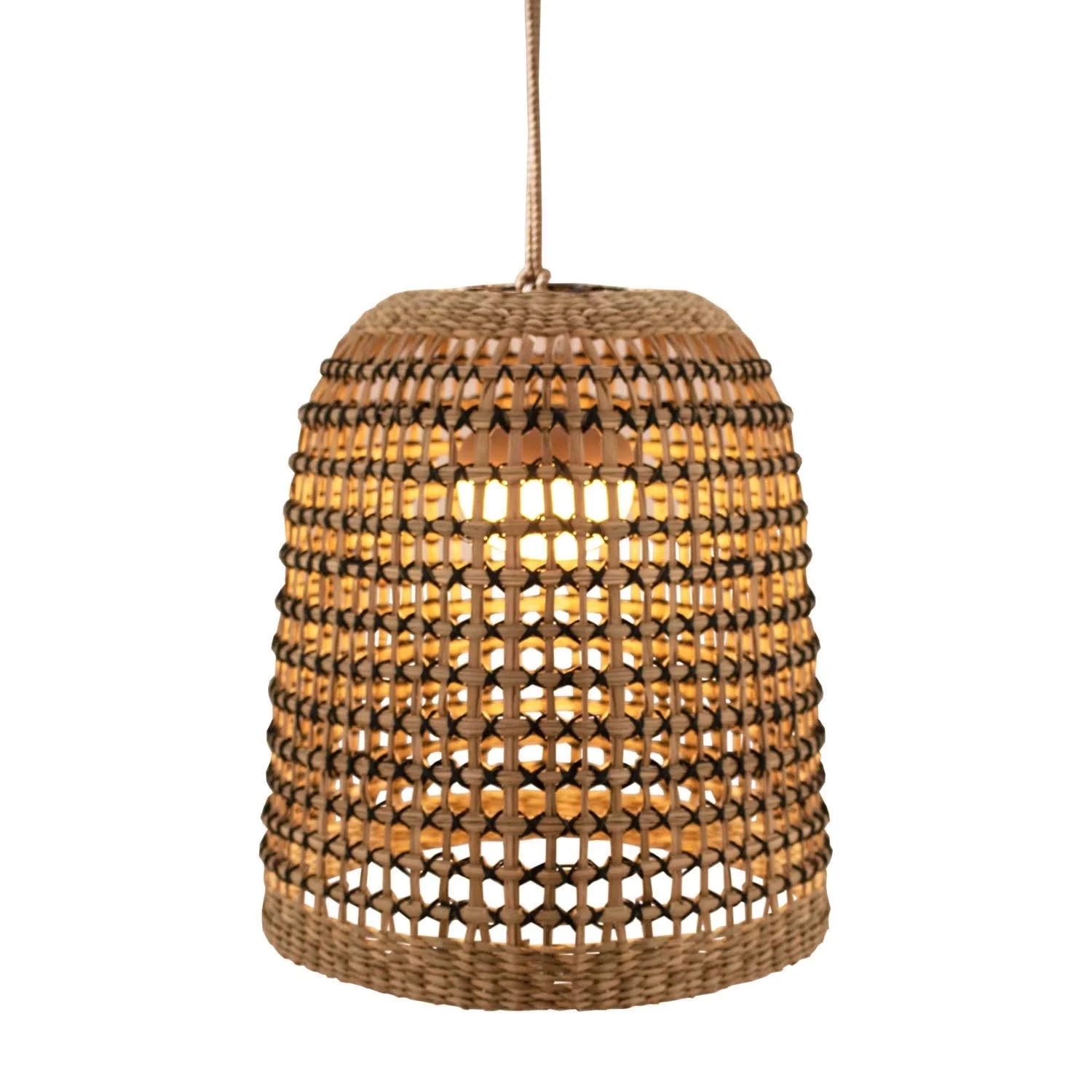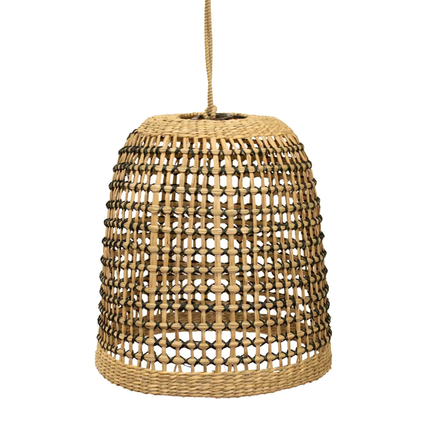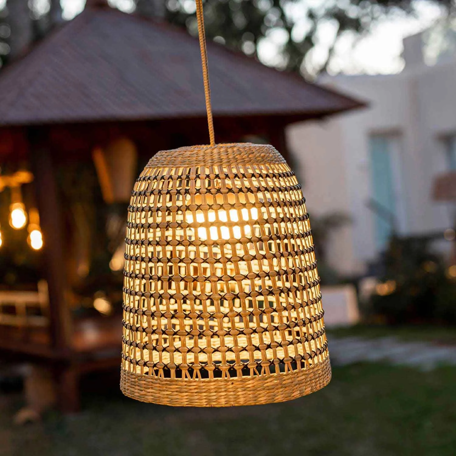 La lampada a sospensione Positano di Newgarden è fatta di fibre naturali, non richiede installazione e ha una sospensione di 3 metri.