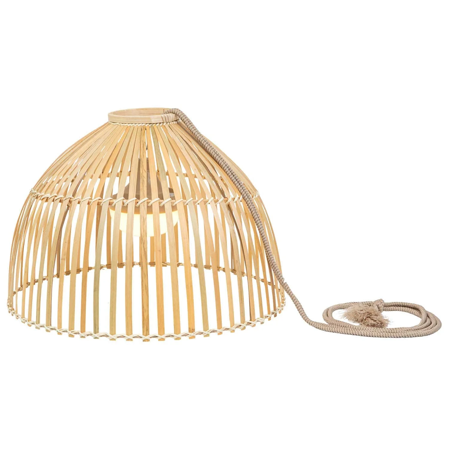 Si tratta di una lampada a sospensione che non richiede installazione, la corda è lunga 3 metri in modo da poterla appendere dove vuoi dando ai tuoi spazi interni ed esterni un tocco naturale di ultima tendenza.