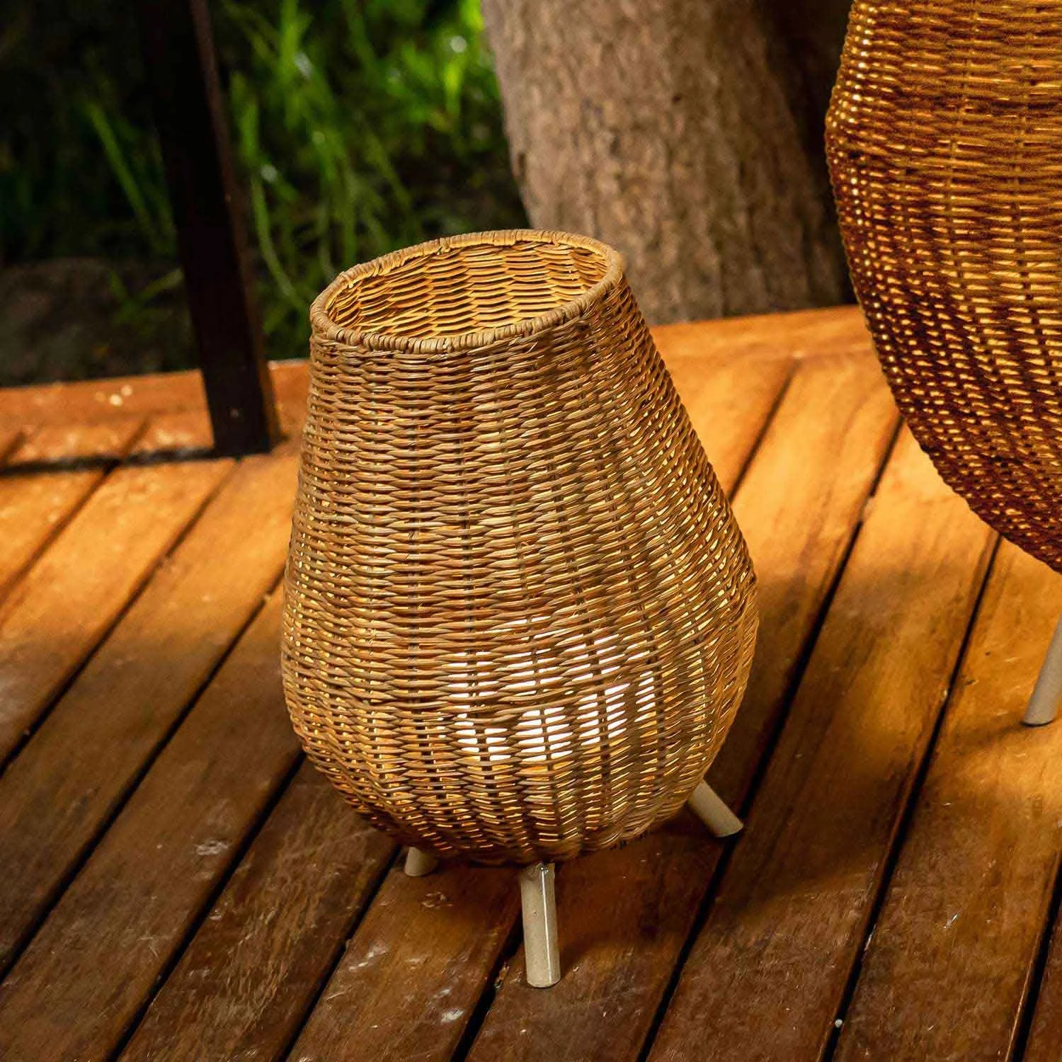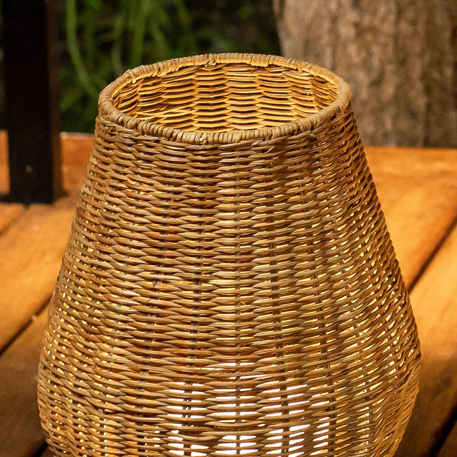 Si tratta di una lampada senza fili per esterni e interni che è fatta di fibre naturali e intrecciata a mano. Si tratta di un apparecchio che è l'accessorio di illuminazione perfetto per decorare e illuminare il tuo giardino o qualsiasi spazio della tua casa.