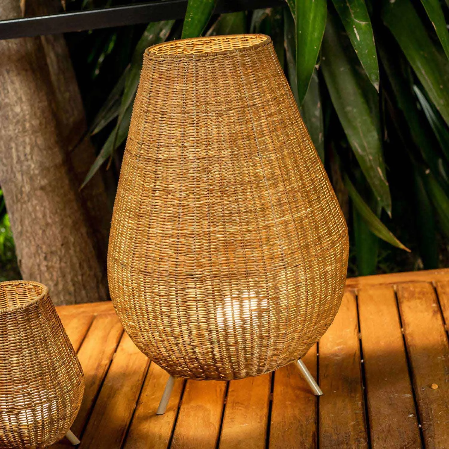 Si tratta di una lampada da terra appartenente alla collezione Saona di Newgarden, adatta sia per interni che per esterni e realizzata a mano con fibre naturali.Si tratta di una lampada da terra appartenente alla collezione Saona di Newgarden che è adatta sia per interni che per esterni ed è fatta a mano con fibre naturali.