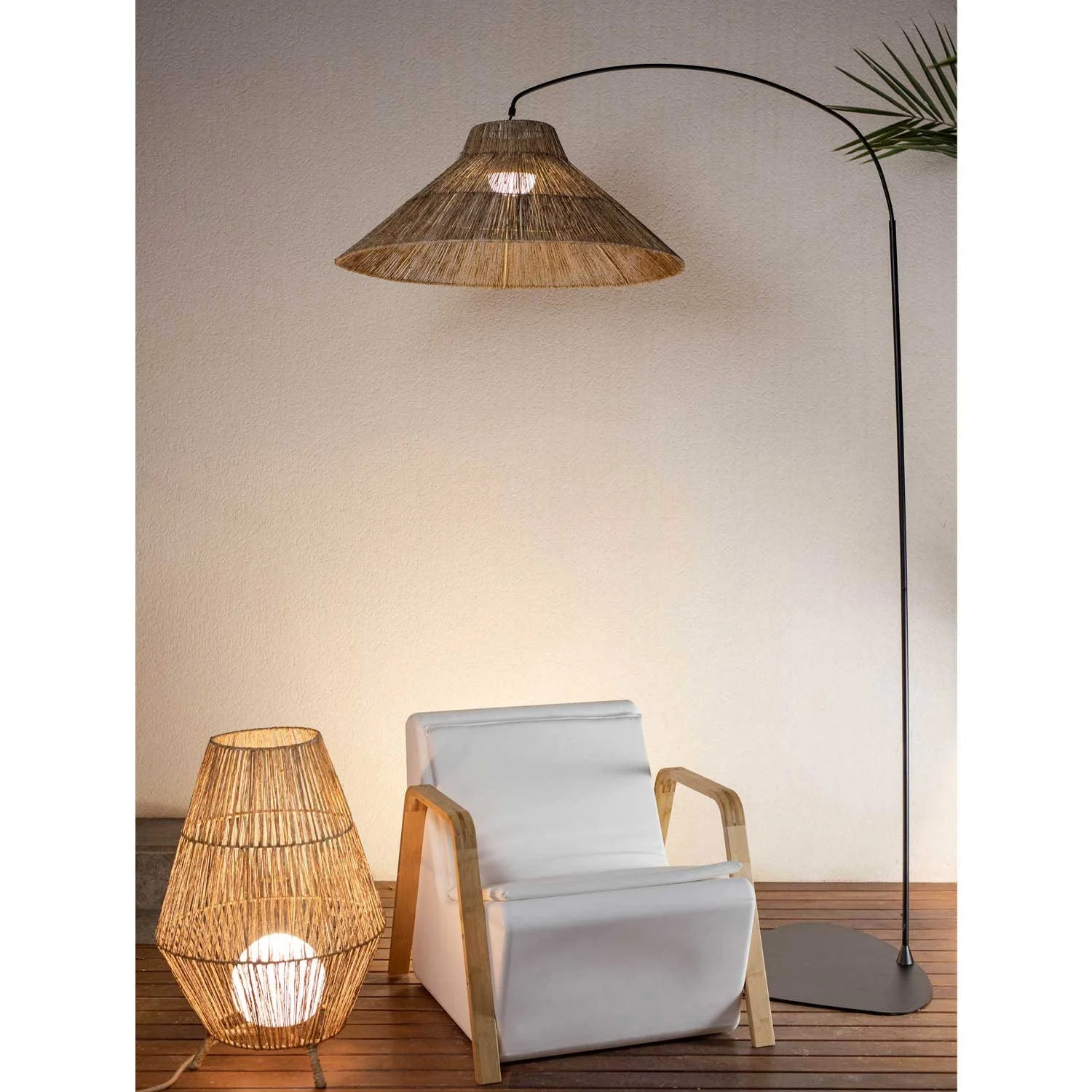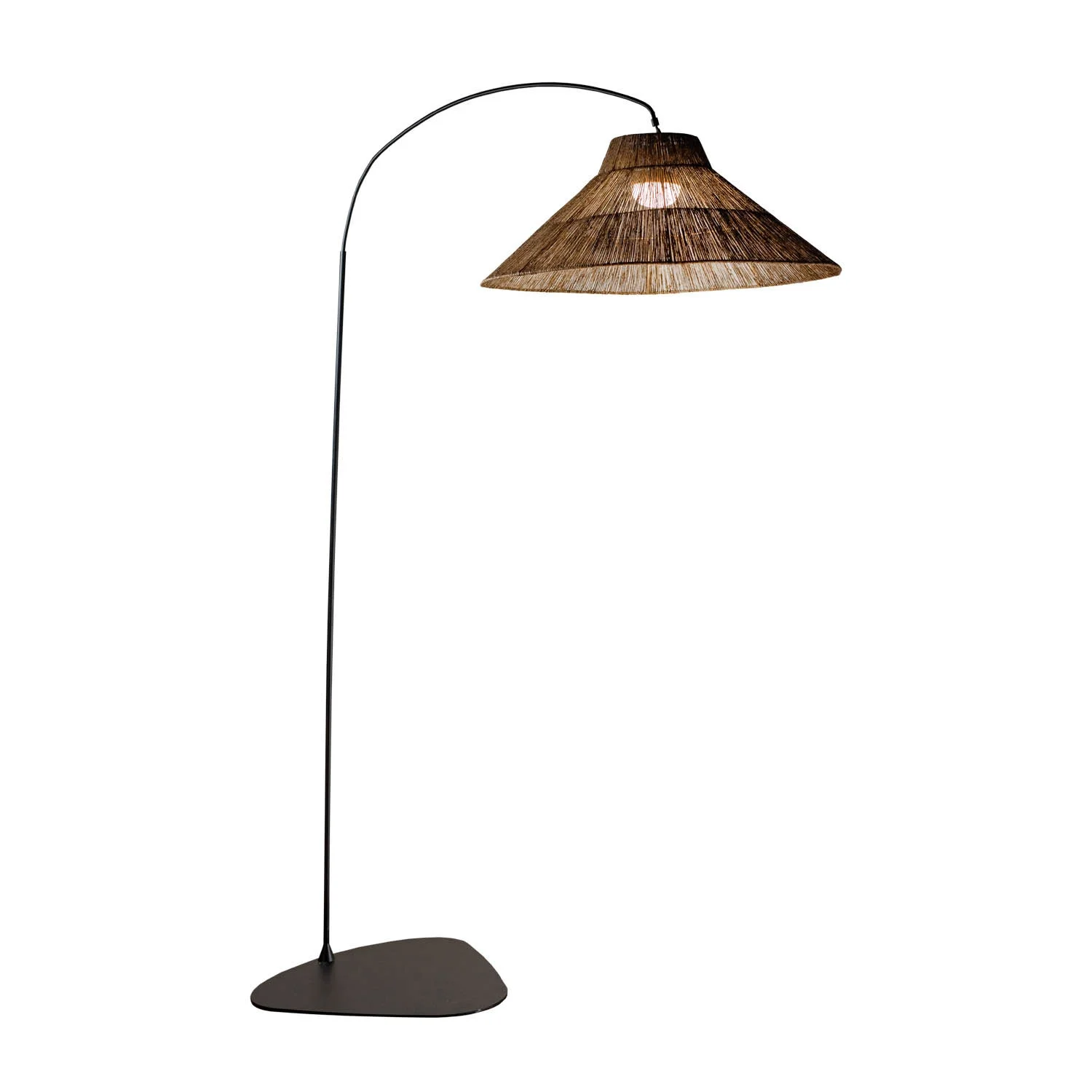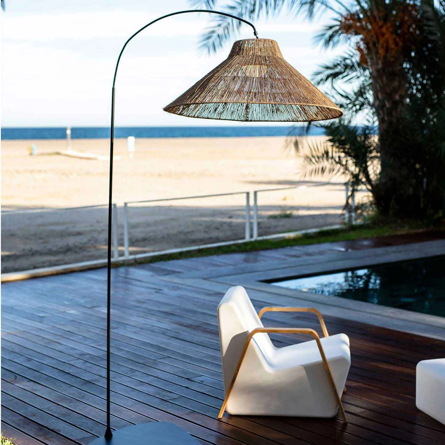 Ideale per esterni, come giardini o terrazze, e per interni dove si cerca di aggiungere un tocco moderno e naturale, questo lampadario si adatta perfettamente a ogni ambiente. Il suo paralume, realizzato con fibre naturali intrecciate a mano, offre un'estetica ecologica e sofisticata, mentre la sua struttura metallica verniciata di nero garantisce durabilità e resistenza.