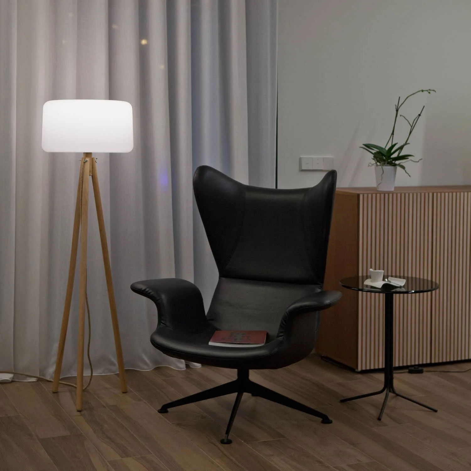 È una lampada da terra che include un telecomando con dimmer e colore della luce.