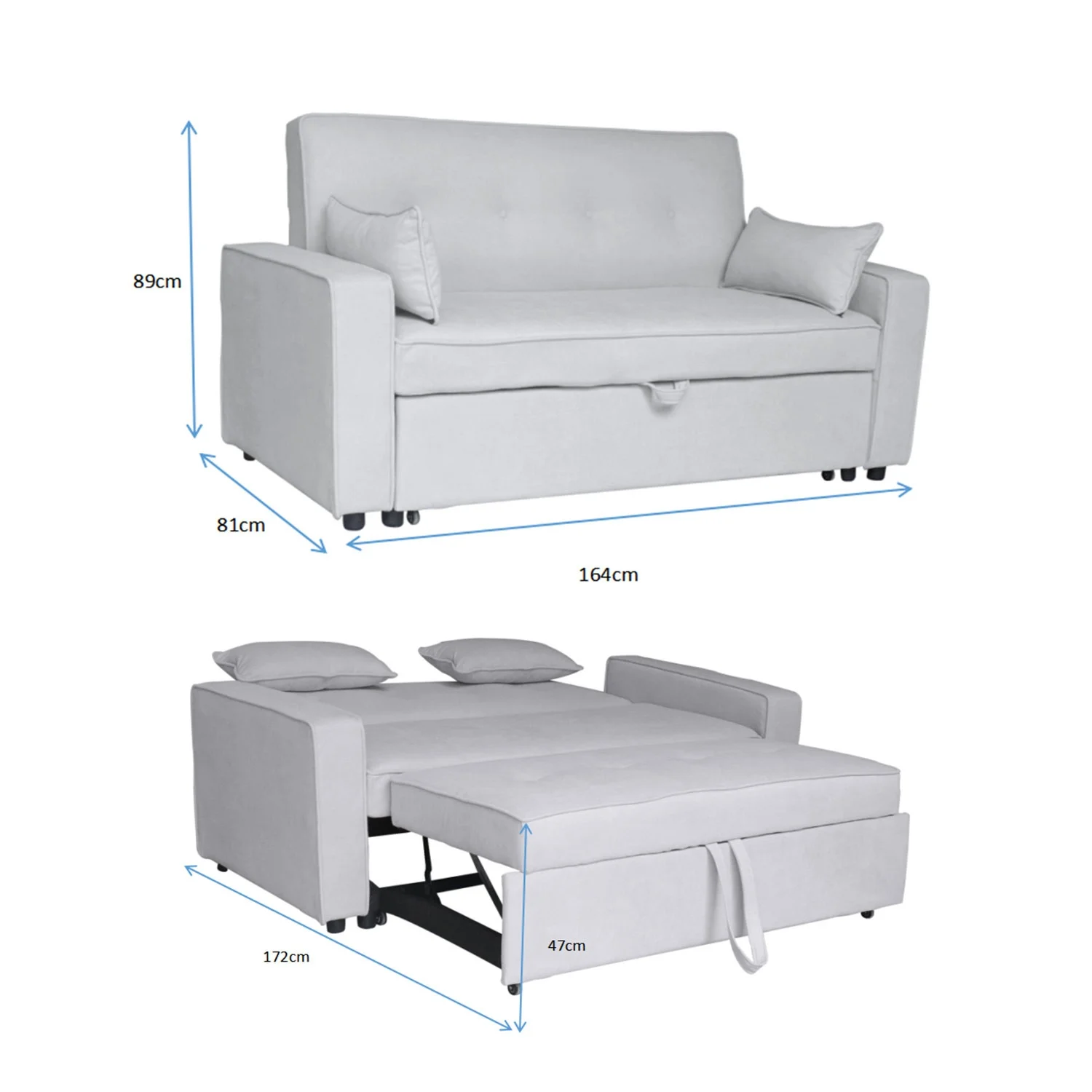 Trasforma il tuo soggiorno o la tua camera per gli ospiti con il Divano Letto Grigio Chiaro Lexie. Con il suo colore grigio chiaro e le linee contemporanee, questo divano letto è un'opzione elegante e pratica per qualsiasi casa. Le sue dimensioni generose offrono un comodo sedile per l'uso quotidiano, mentre la funzione letto fornisce uno spazio accogliente per far passare la notte ai tuoi ospiti. Con dimensioni di larghezza di 164 cm, profondità di 81 cm e altezza di 89 cm come divano, e una profondità di 172 cm e altezza di 47 cm come letto, questo divano letto è la soluzione perfetta per spazi piccoli o multifunzionali.
