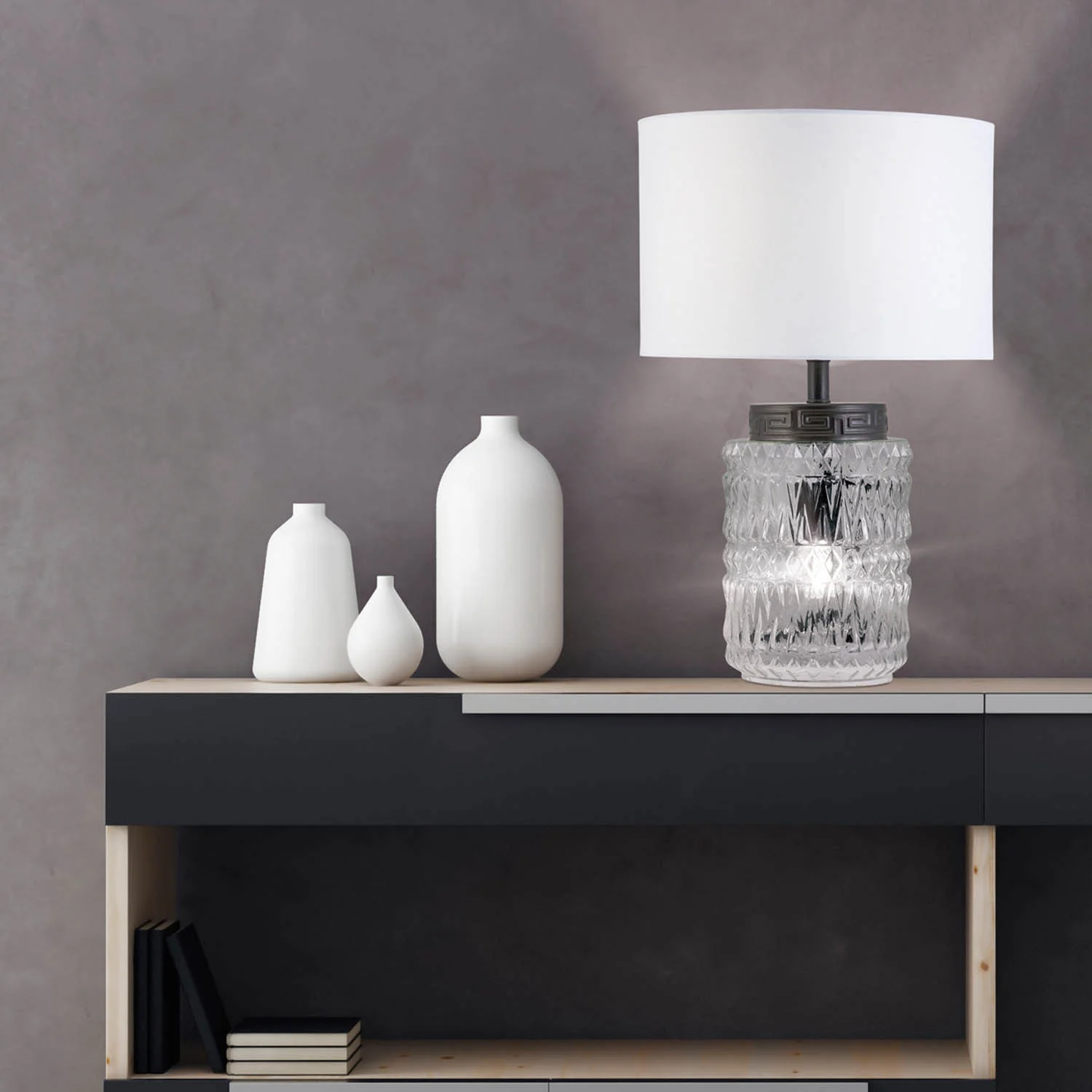 La lampada da tavolo Cristal E27 Eriksson è costituita da una base in vetro e metallo nero.