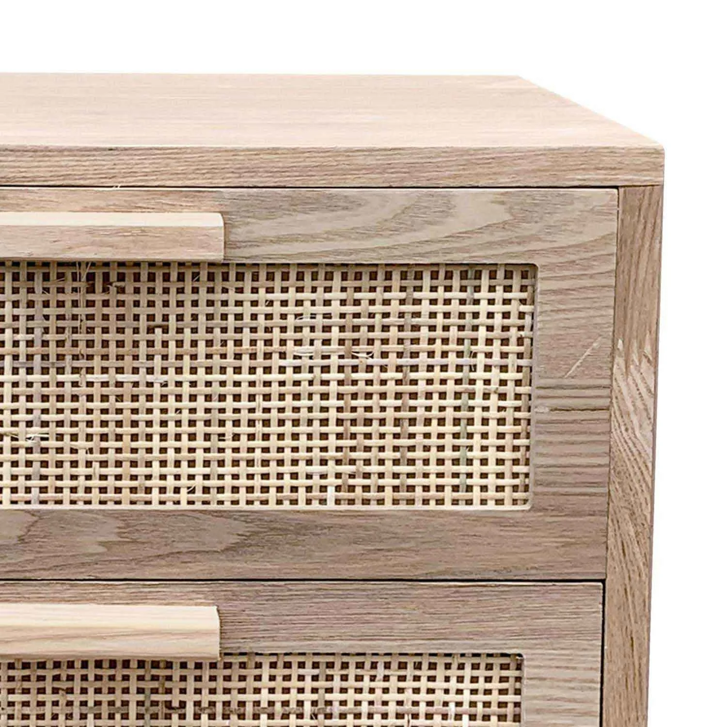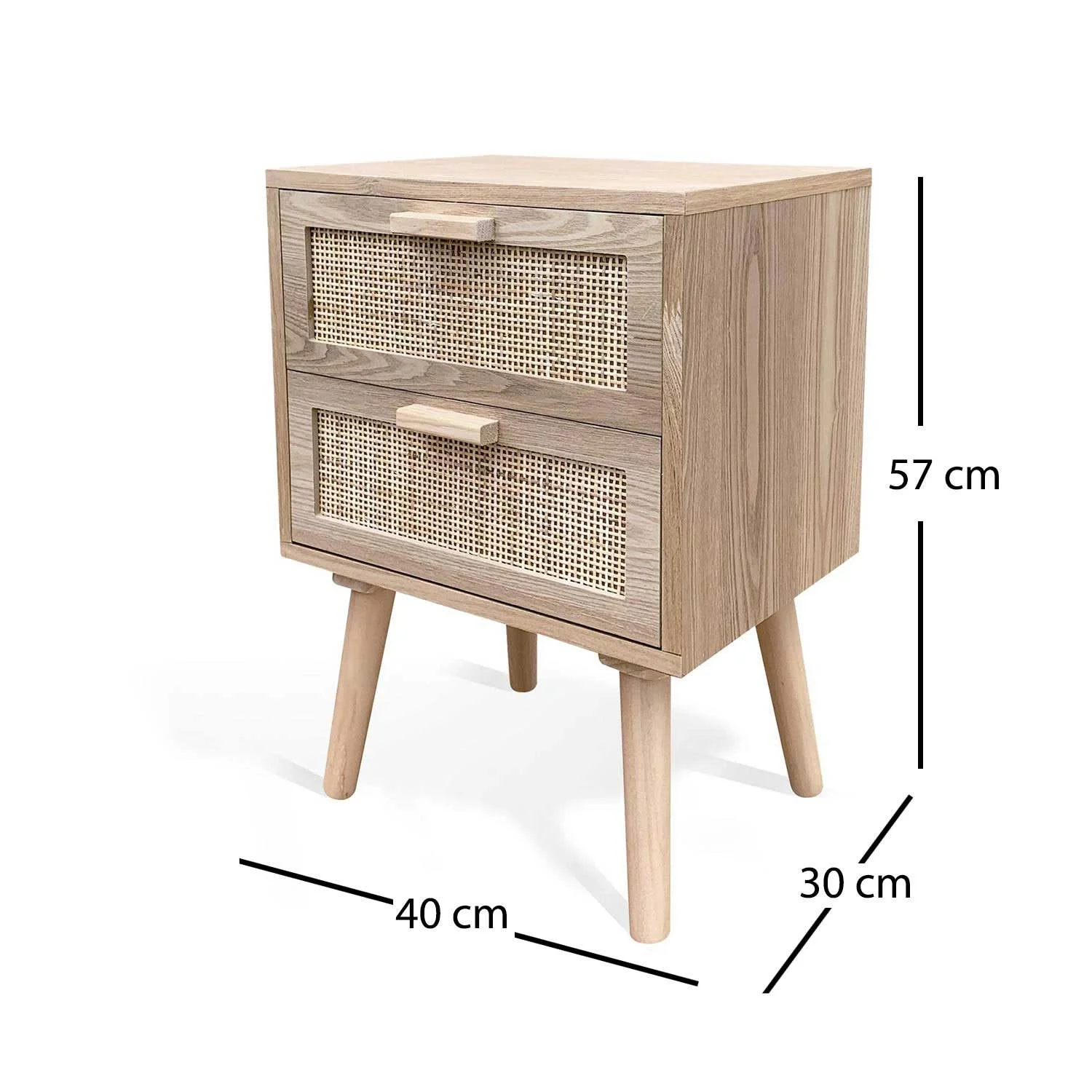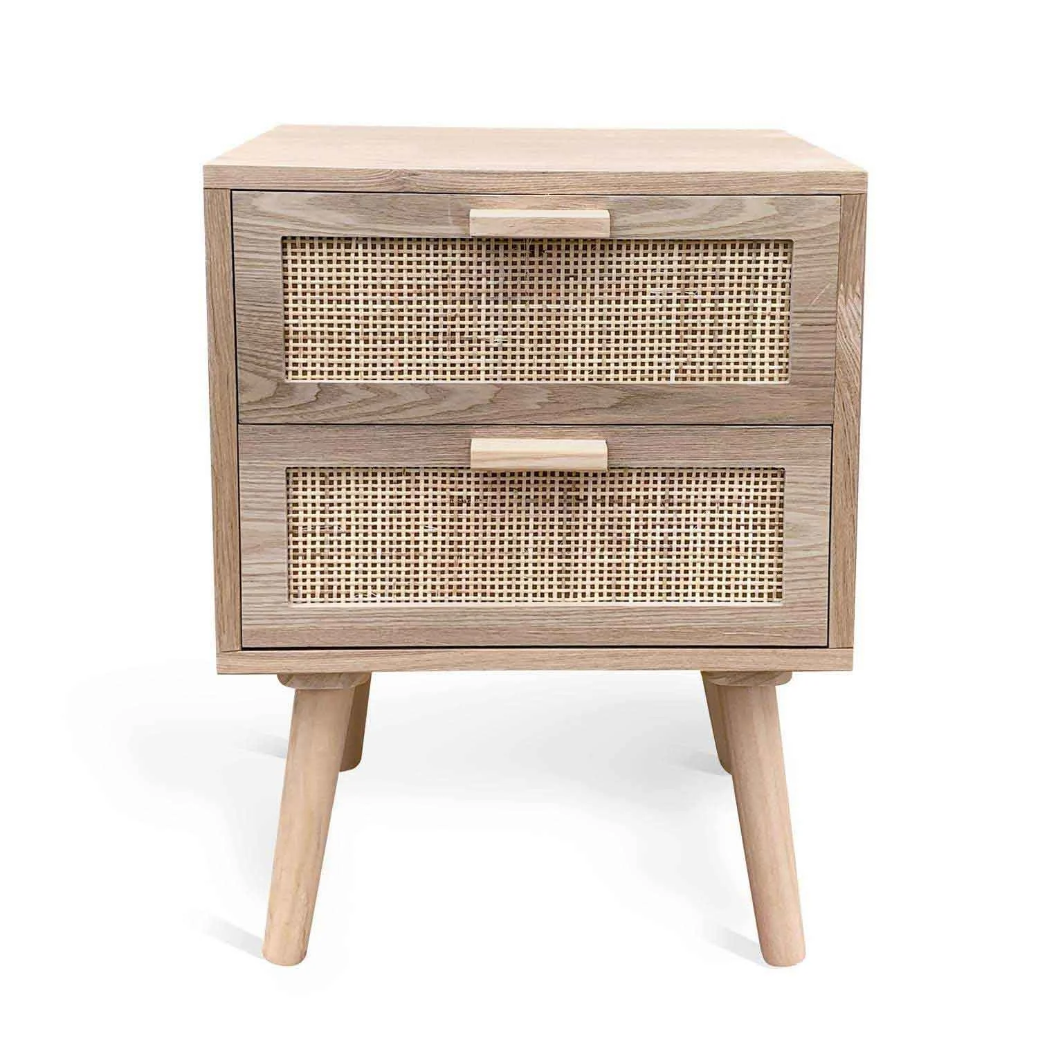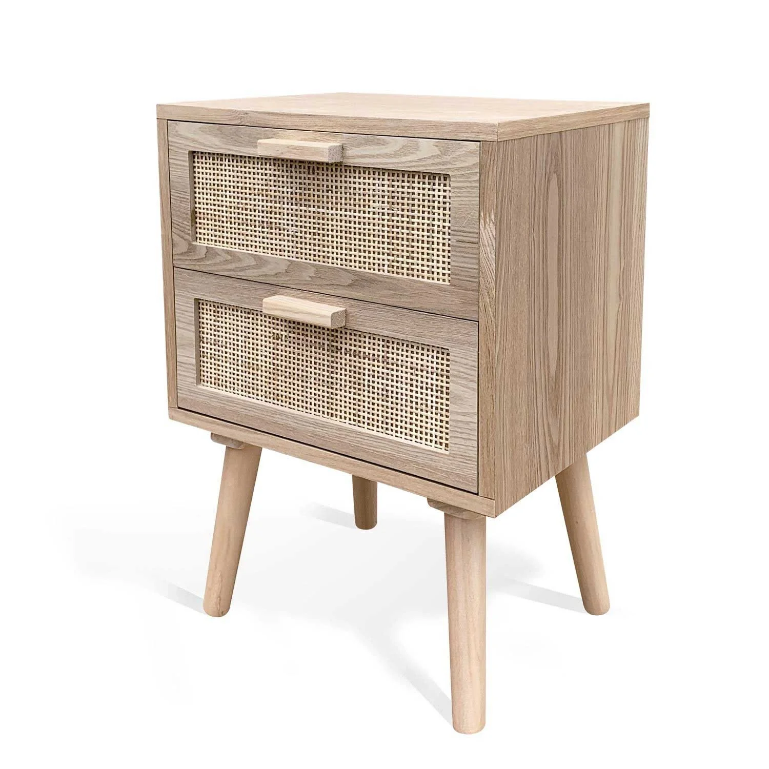 Comodino a 2 cassetti della collezione Leif, le cui finiture chiare e naturali doneranno calore e luminosità al vostro spazio.