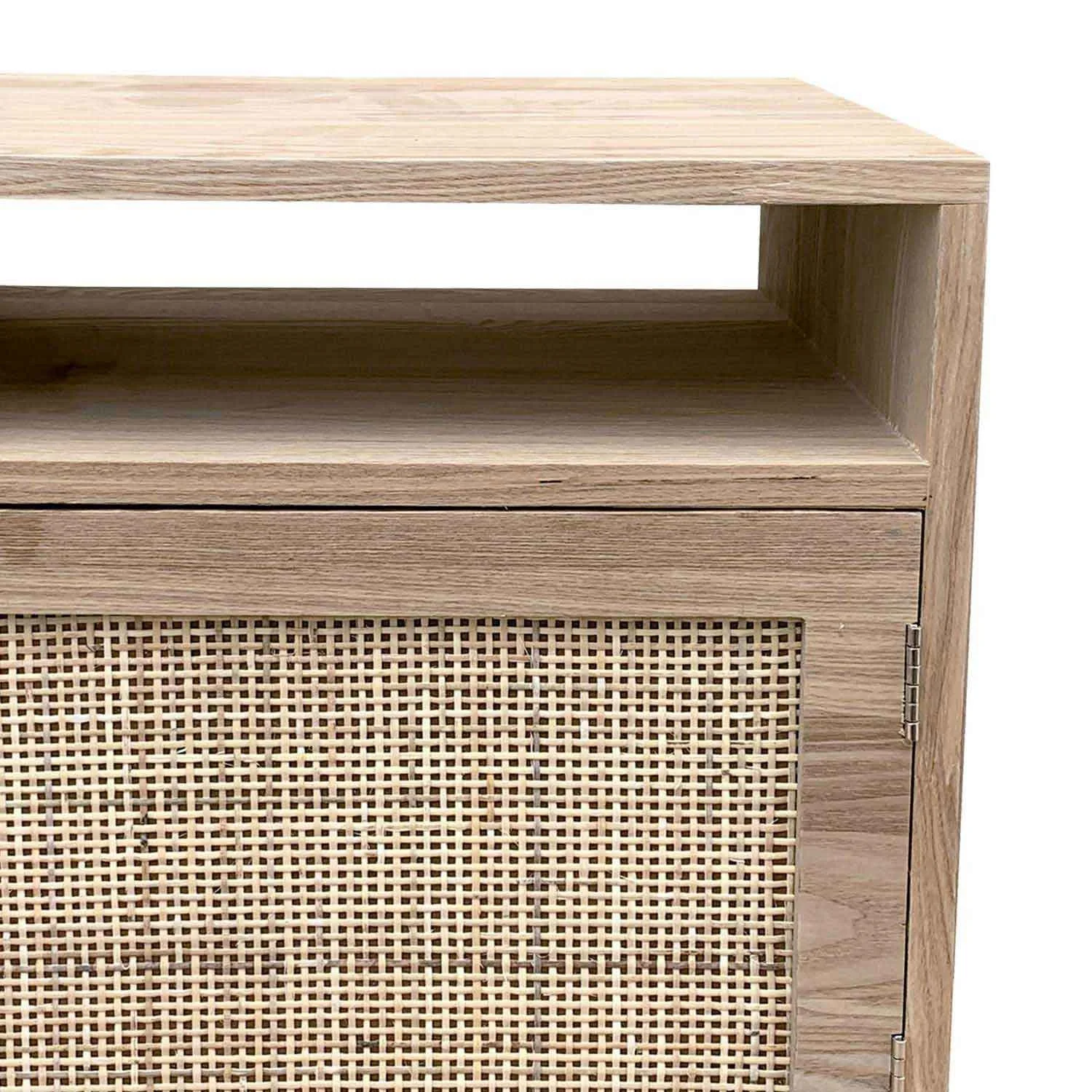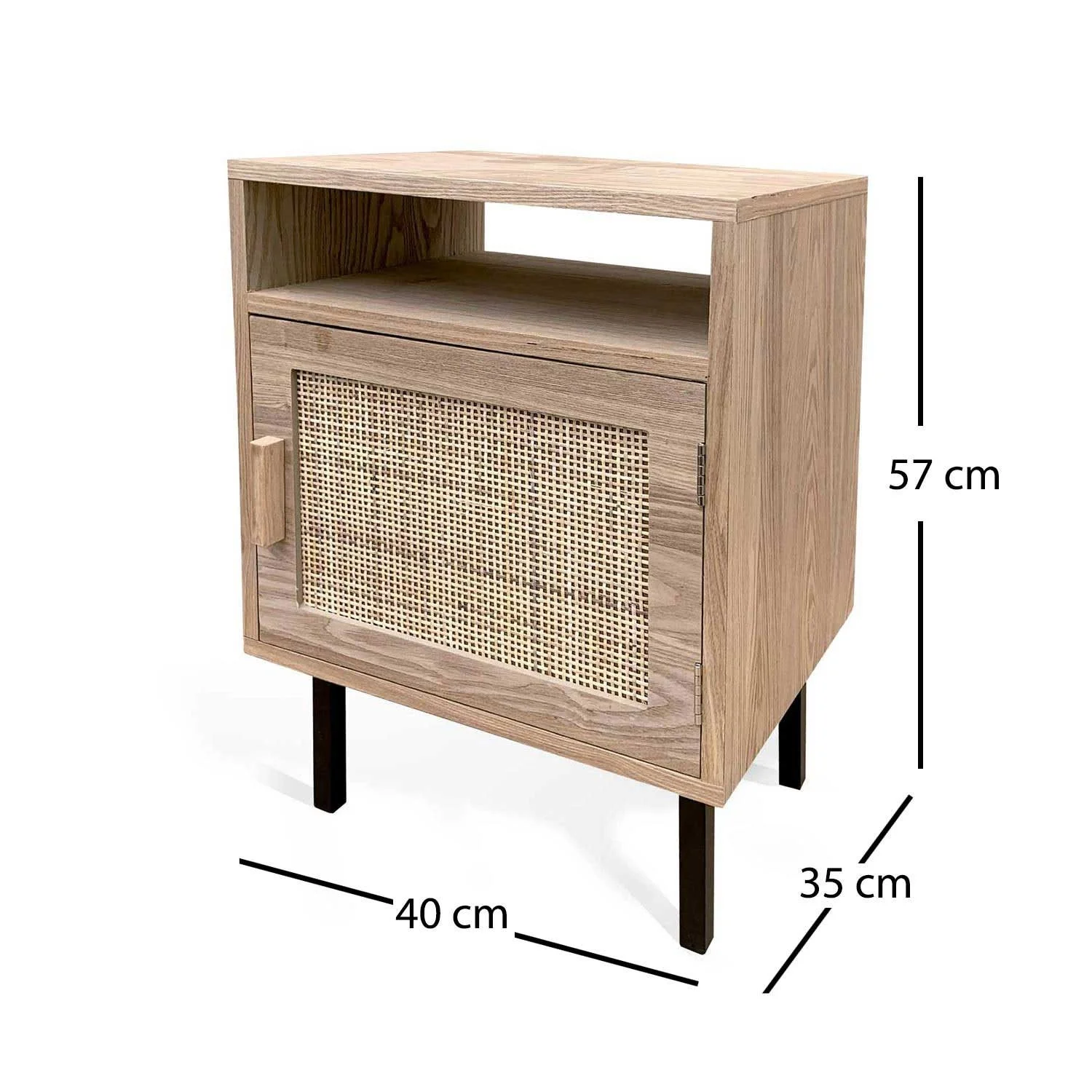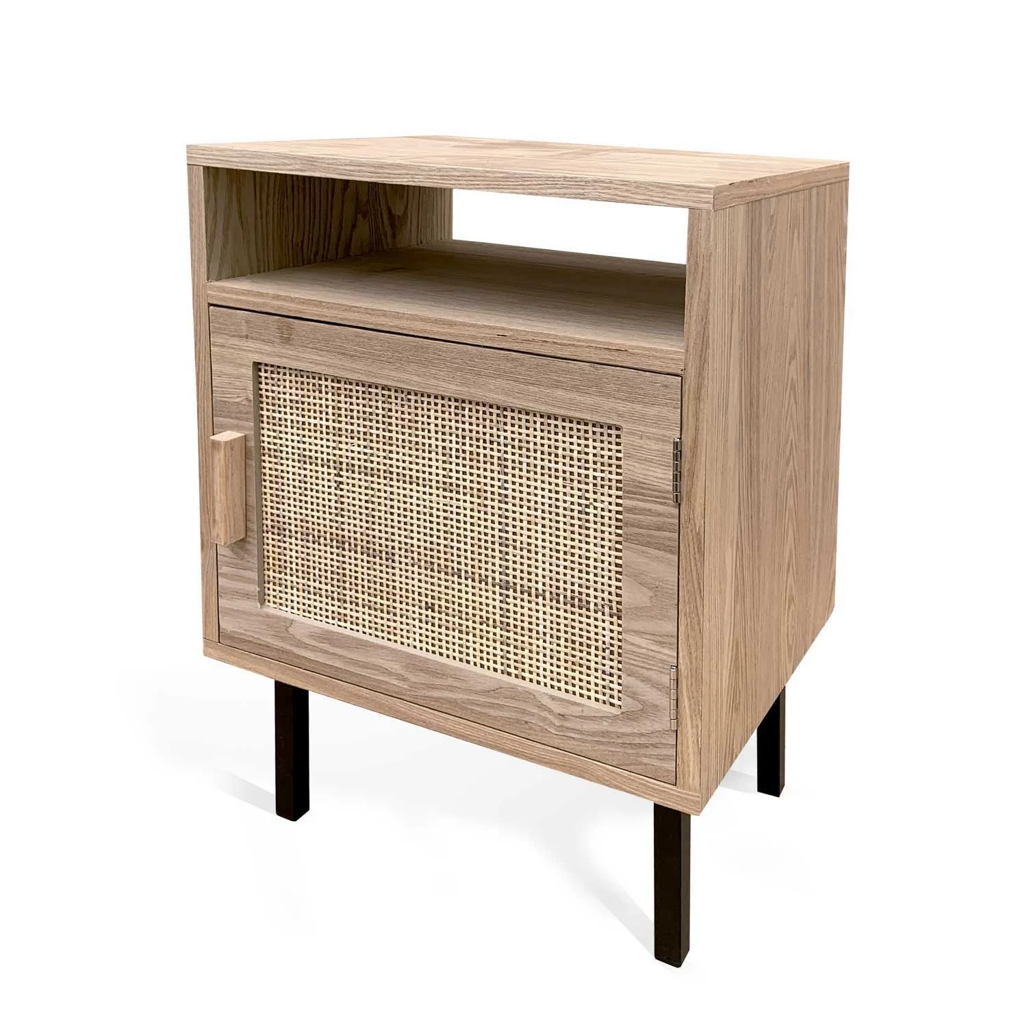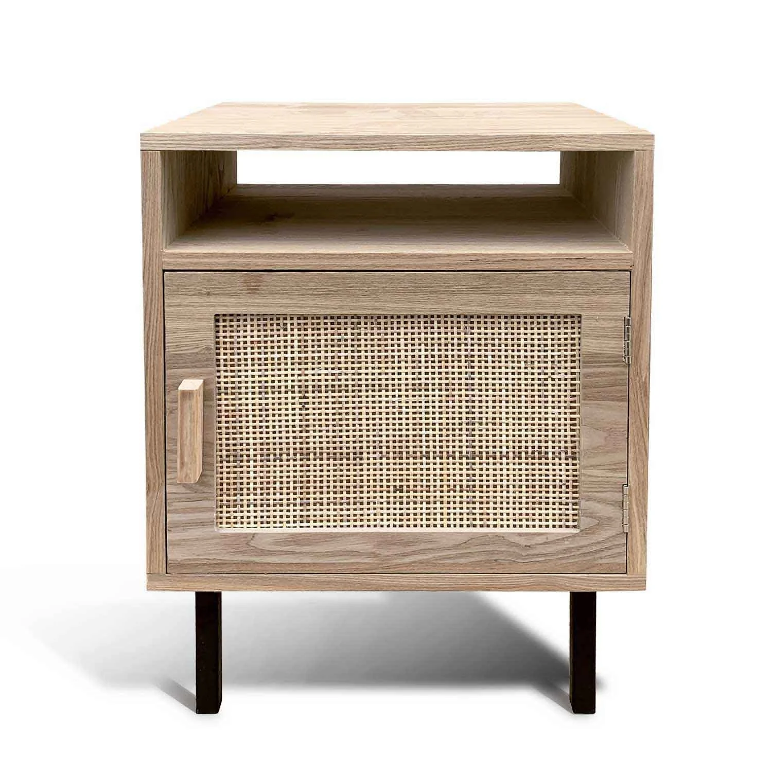 È un comodino a 1 anta appartenente alla collezione Leif, realizzato con finiture chiare e naturali, ideale per un ambiente in stile nordico e/o moderno.