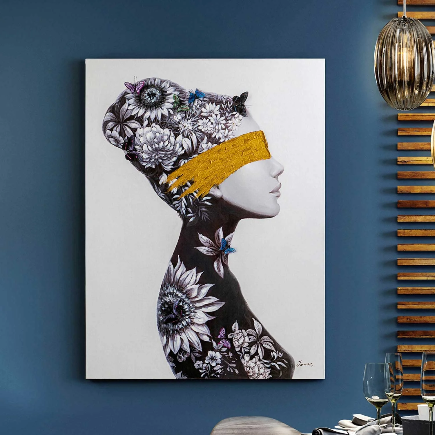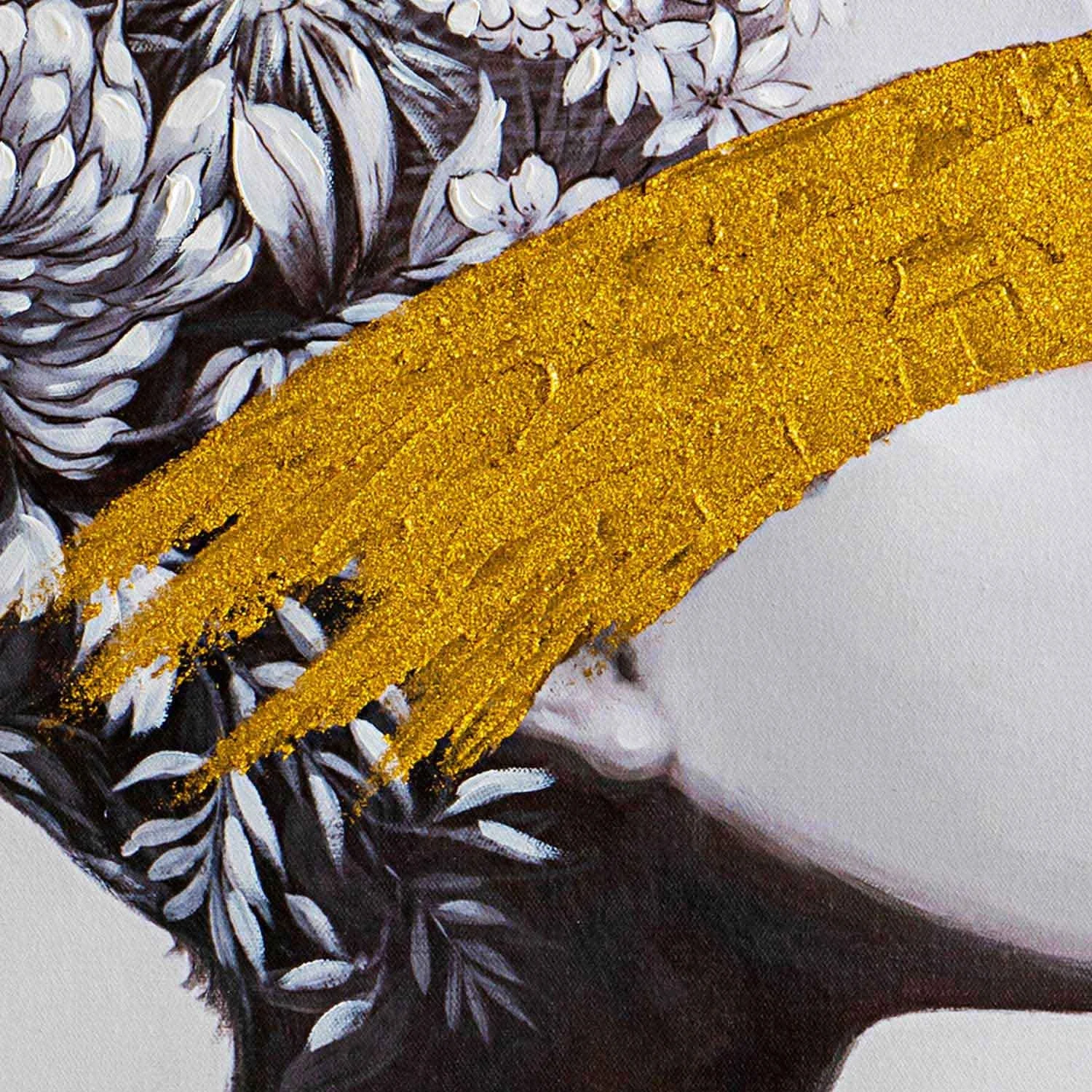 Si tratta di un quadro con pittura acrilica con dettagli in oro, montato su una cornice.