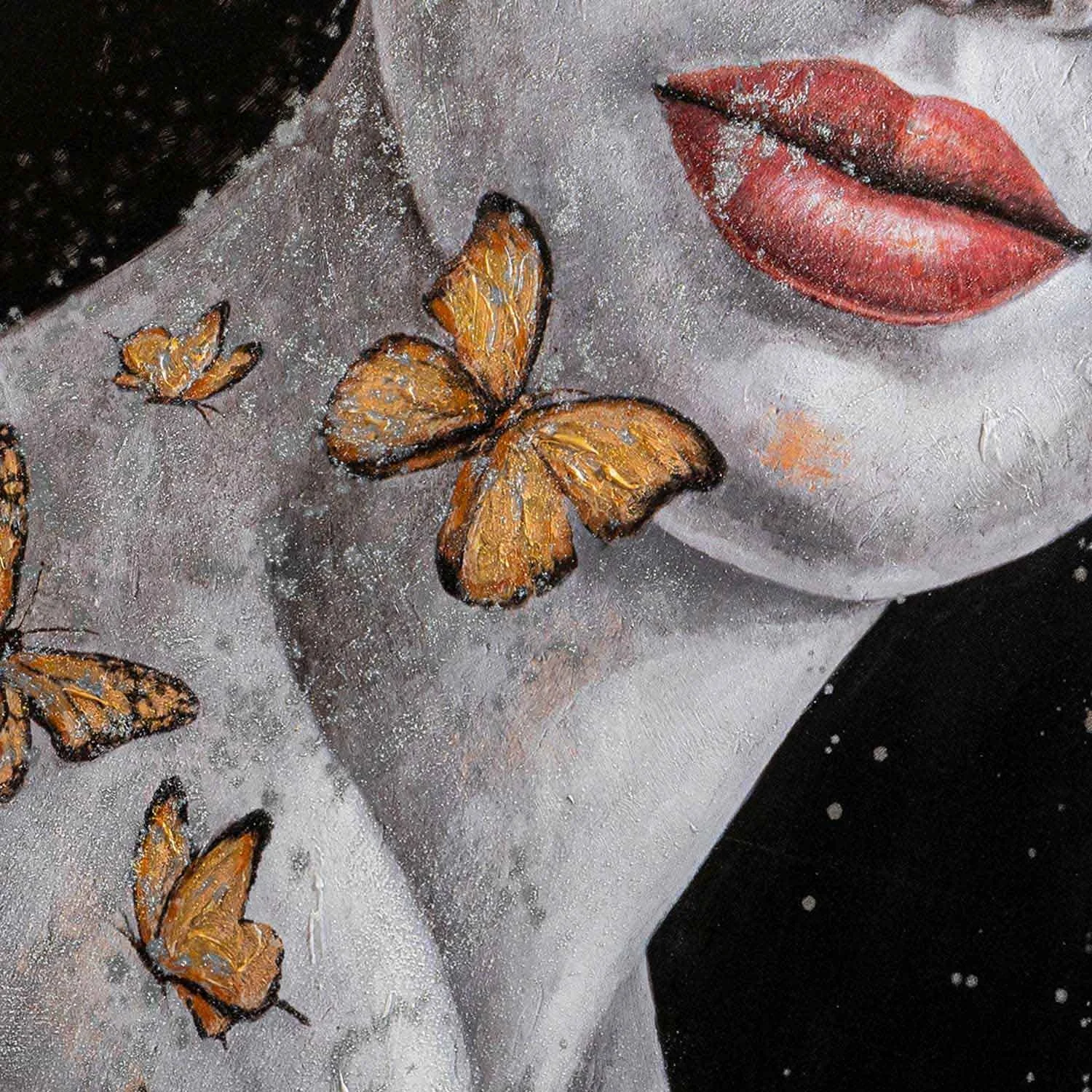 Si tratta di un quadro in acrilico con dettagli dorati, montato su una cornice.