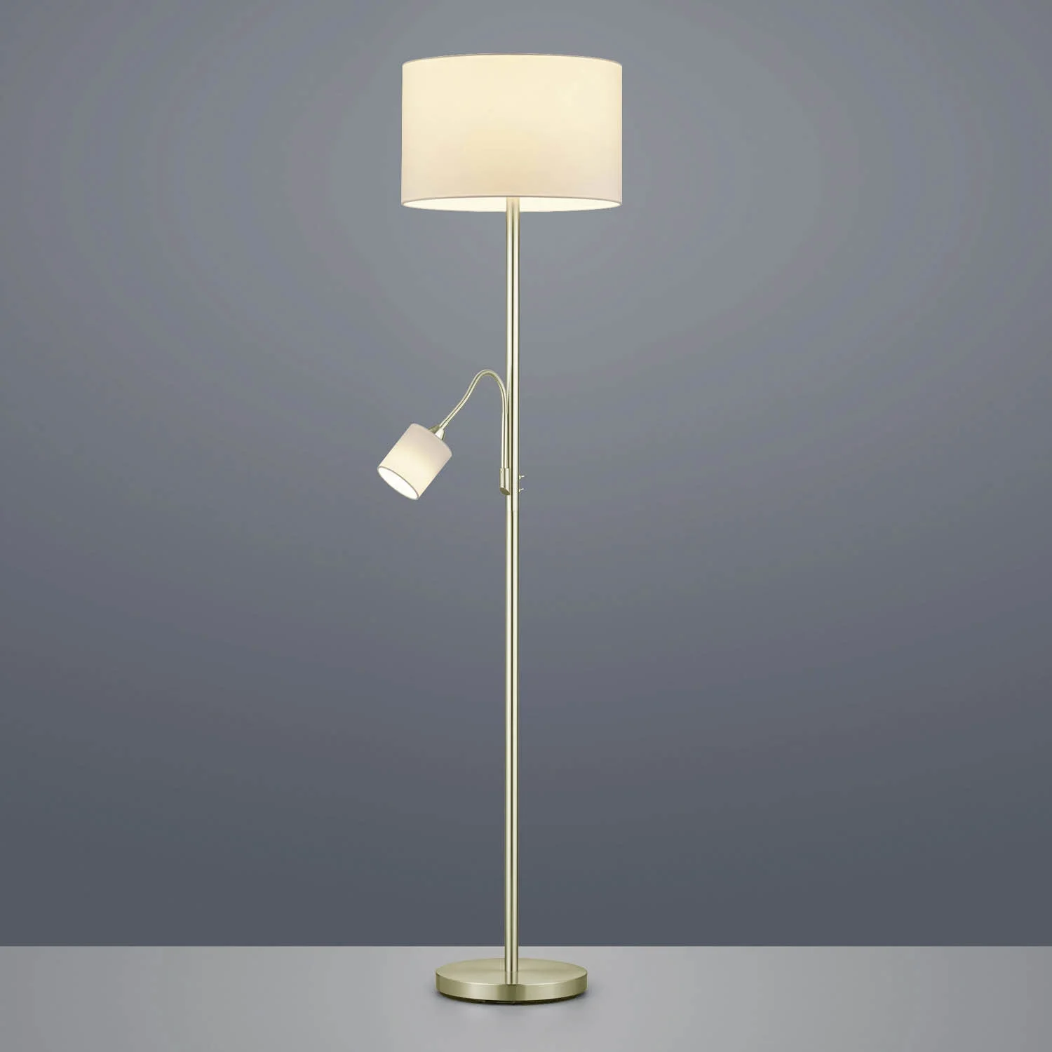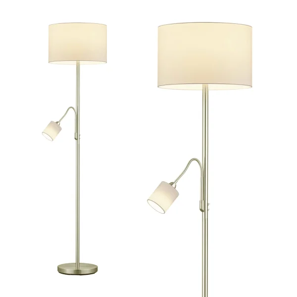 Queste lampade da terra Broome con lampada da scrivania in metallo e paralume bianco sono dotate di diverse fonti luminose che possono essere accese e spente in modo indipendente, consentendo di regolare l'illuminazione in base alle proprie esigenze.