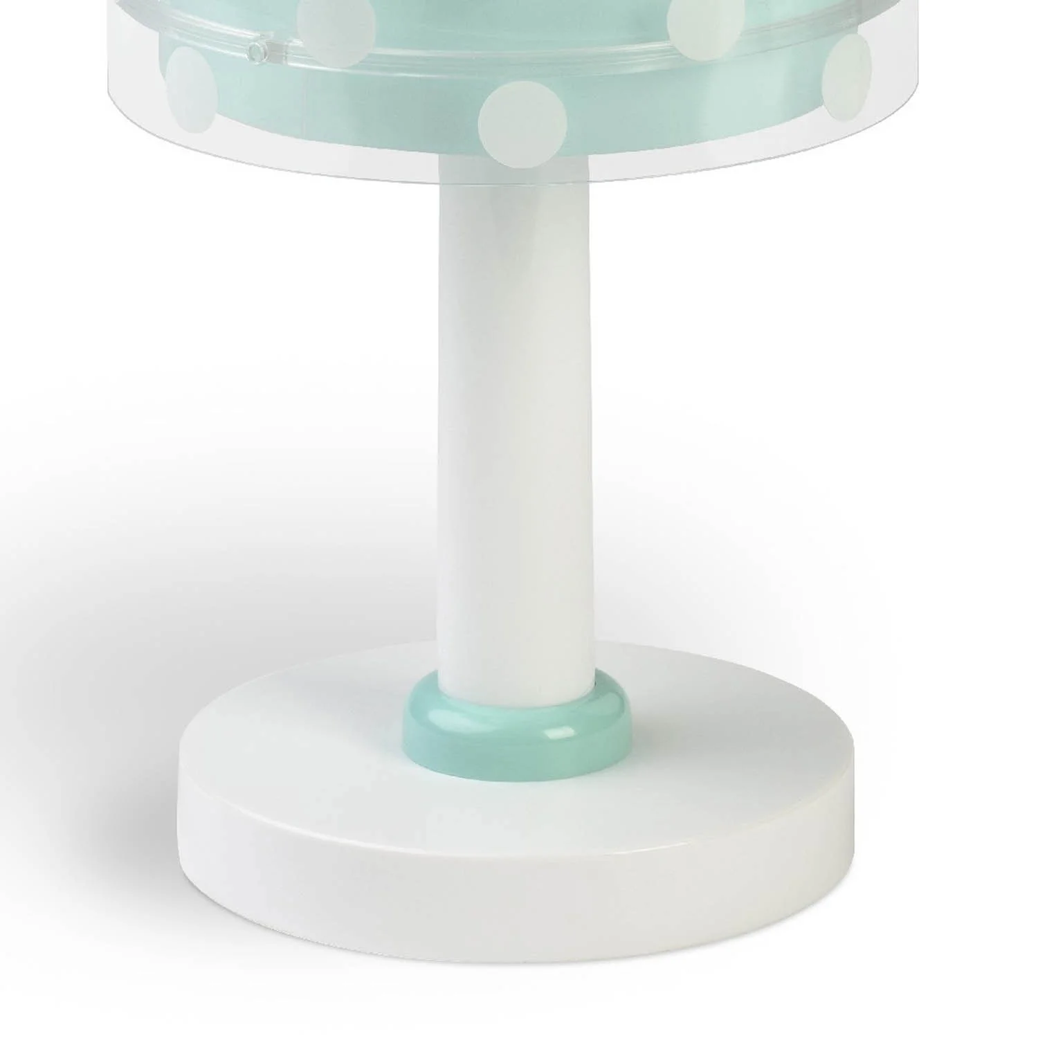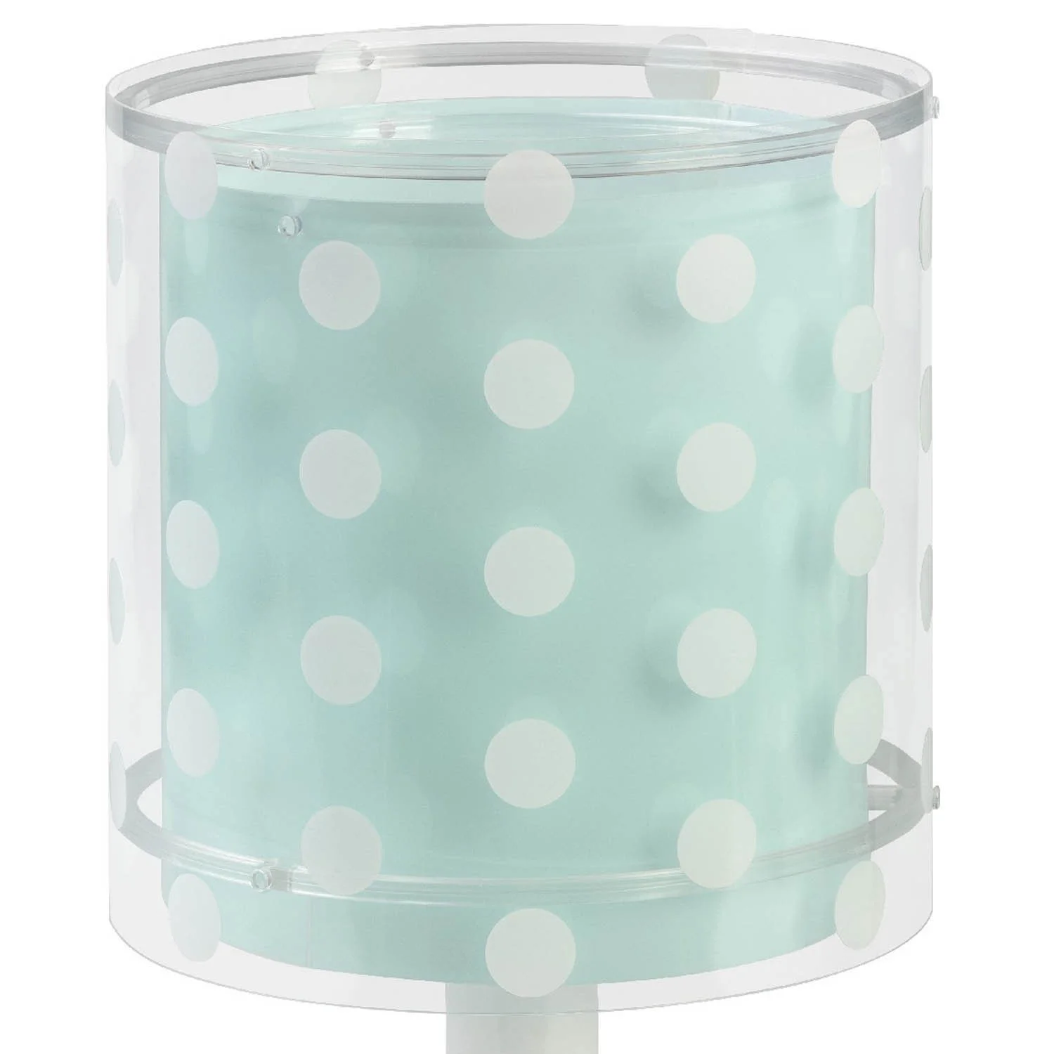 È una bella lampada da tavolo con un motivo di piccoli punti bianchi su sfondo turchese.
