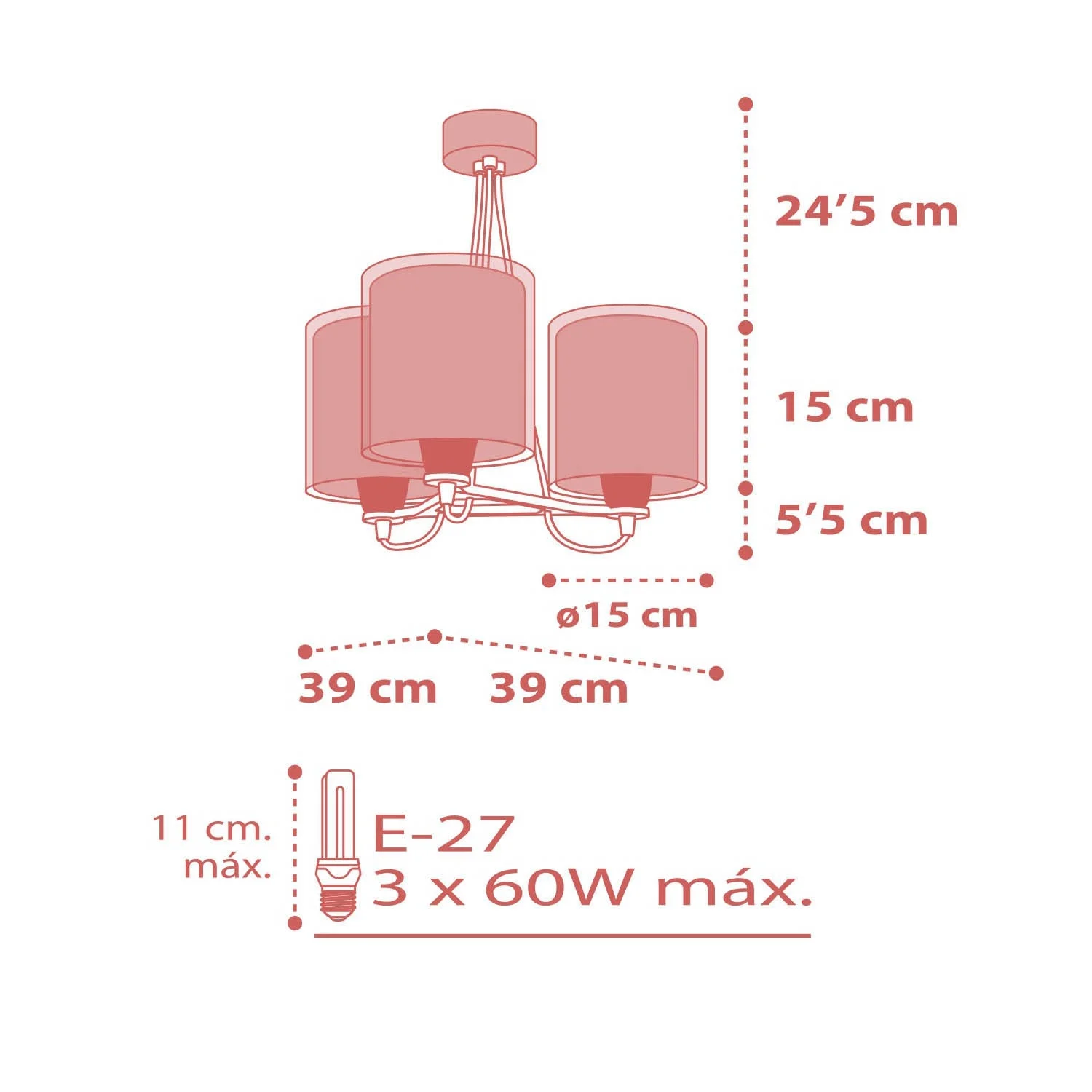 Funziona con tre lampadine con attacco E27 da massimo 60 W (lampadine non incluse).