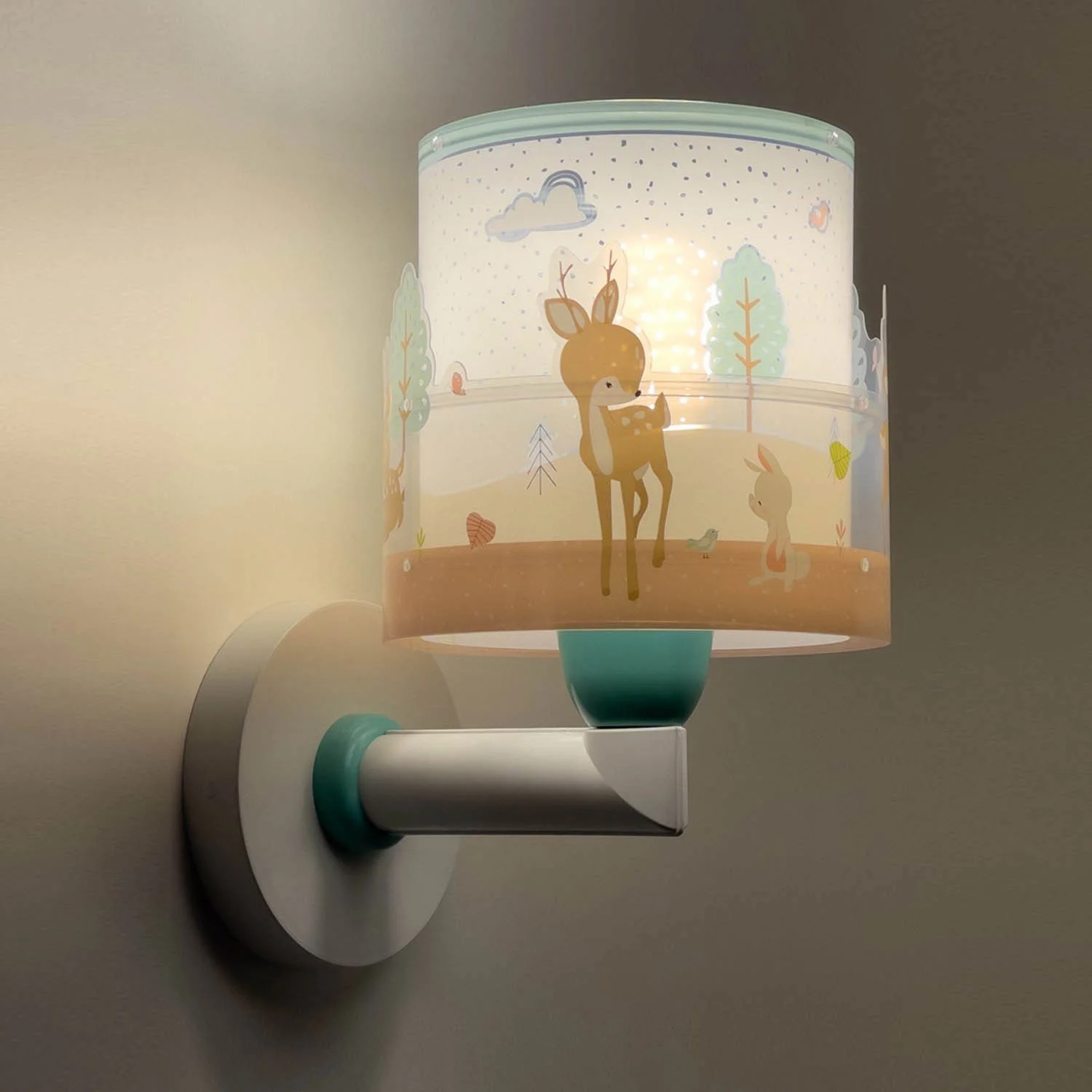 L'applique Loving Deer riempirà la stanza del vostro piccolo di magia e tenerezza. Con il suo doppio paralume trasparente e l'affascinante disegno di cervi, coniglietti, alberi e nuvole, questa lampada da parete crea un'atmosfera calda e divertente. Offre inoltre un'illuminazione morbida e decorativa, perfetta per accompagnare i momenti di relax o di lettura.