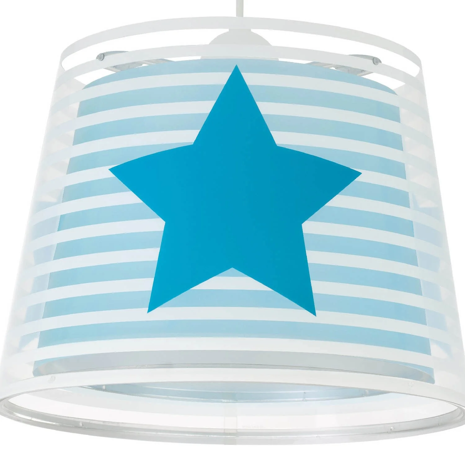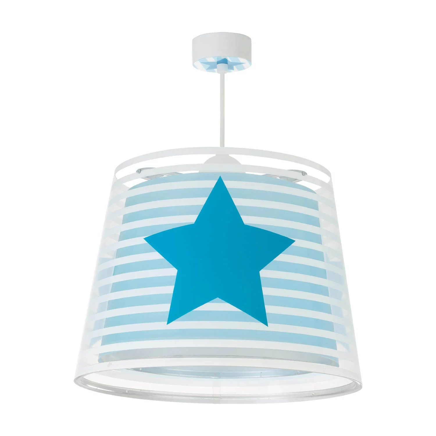 Questa sospensione infantile, realizzata in polipropilene con doppia schermatura, presenta un design accattivante di una stella blu con linee bianche su uno sfondo blu. La sua versatilità la rende la scelta ideale per illuminare con fascino ogni spazio per bambini.