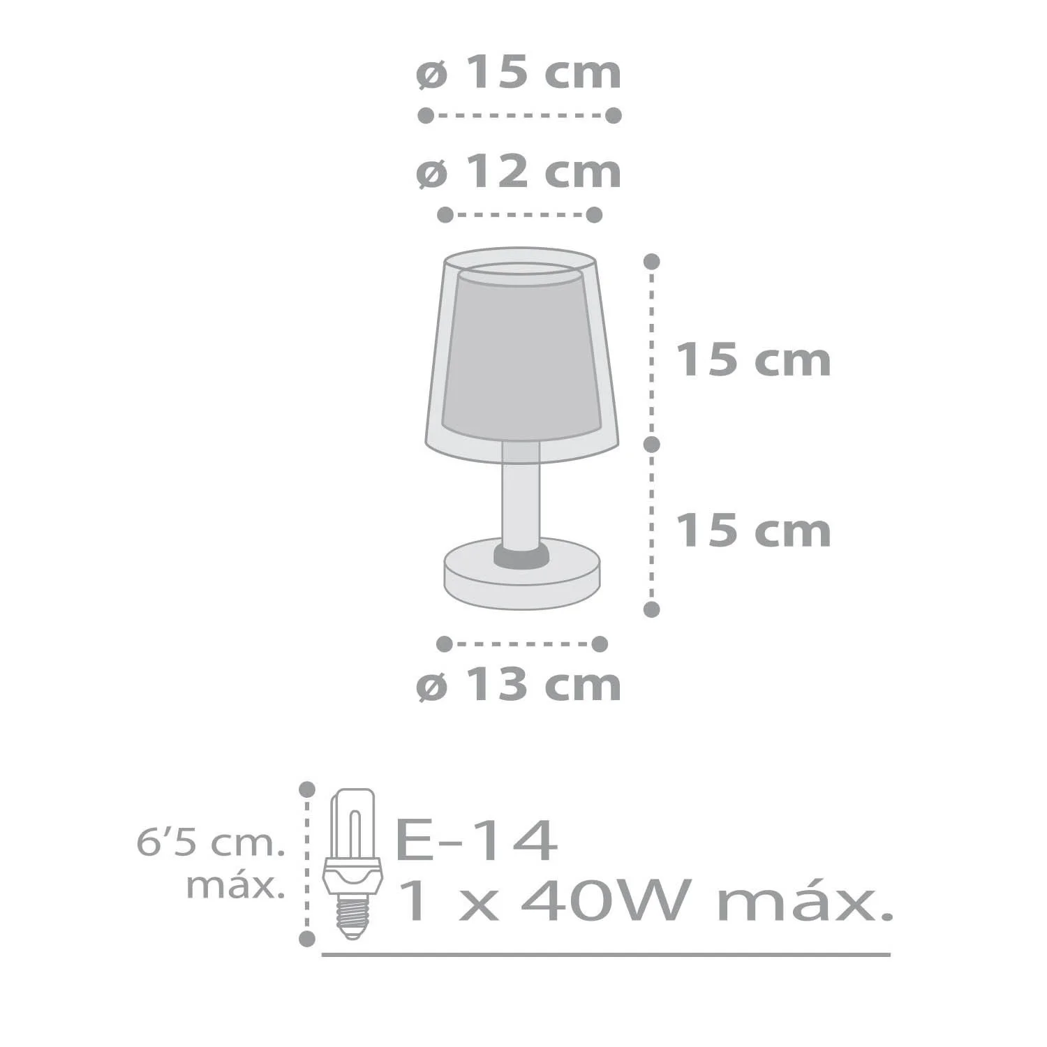 Queste lampade da tavolo per bambini funzionano con una lampadina a attacco E14 fino a 40 W (lampadina non inclusa), garantendo che non superi i 6,5 cm di altezza. Si consiglia l'uso di lampadine a LED per un'illuminazione efficiente e duratura.